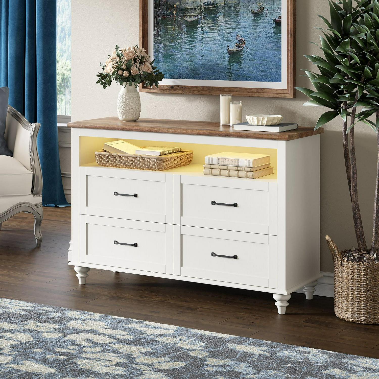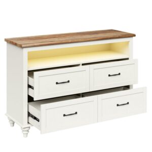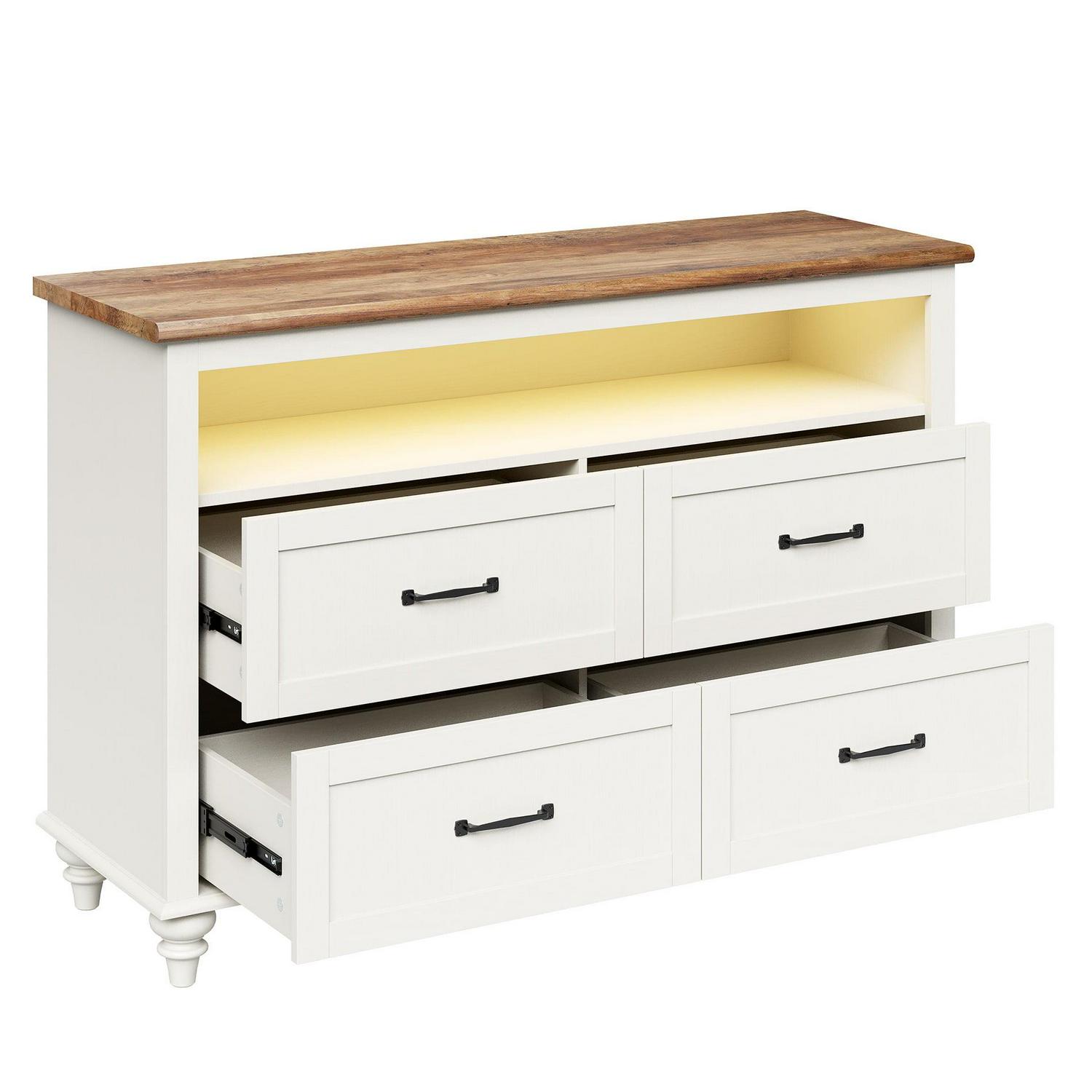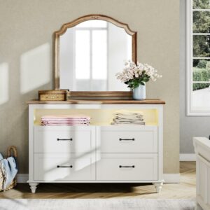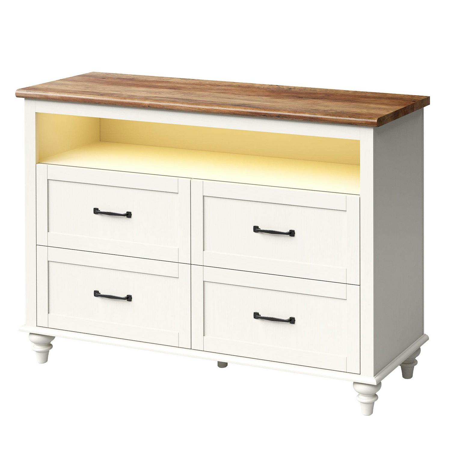 4 Drawer Dresser with LED Light, Wood Chests of Drawers for Bedroom and Living Room, White, 47 Inch