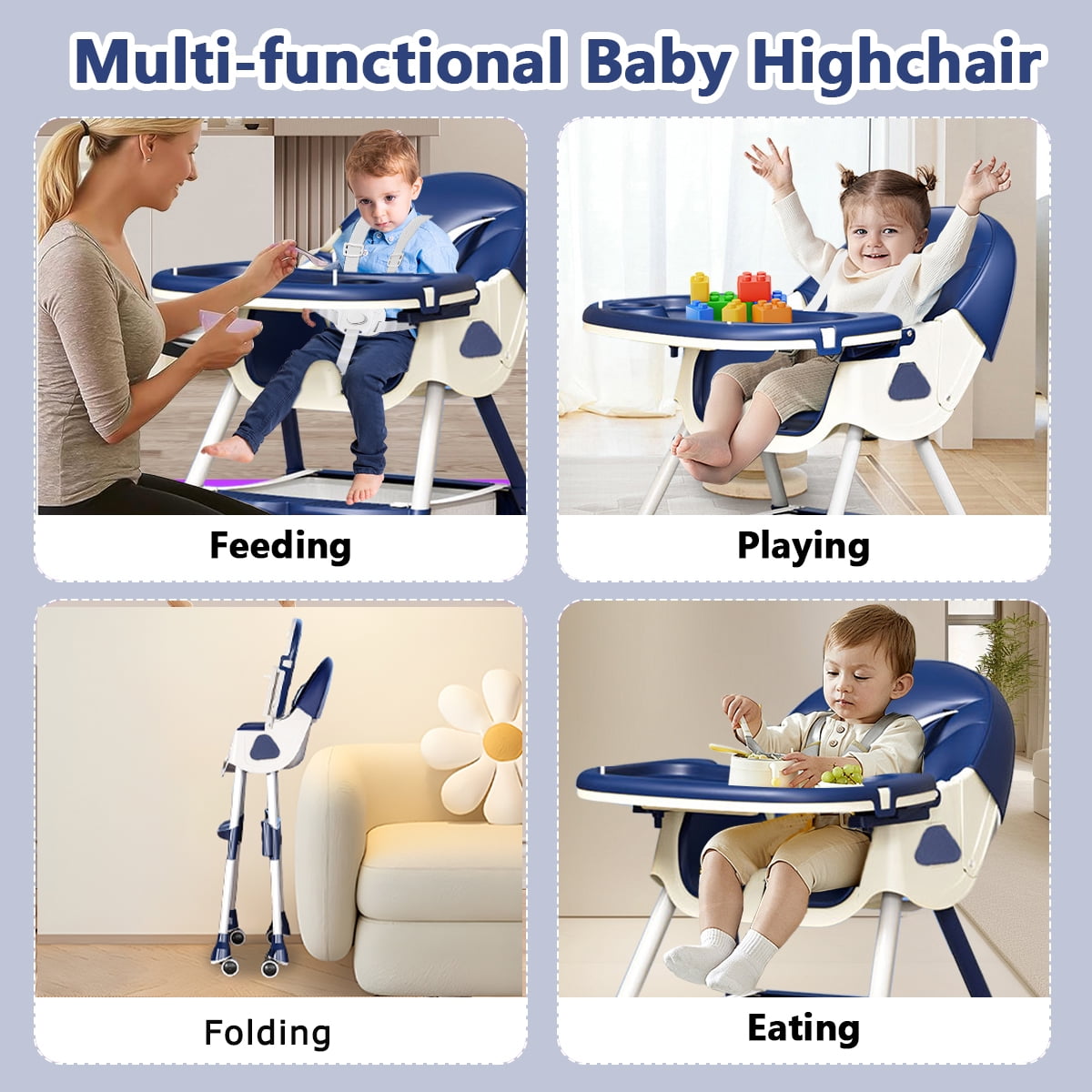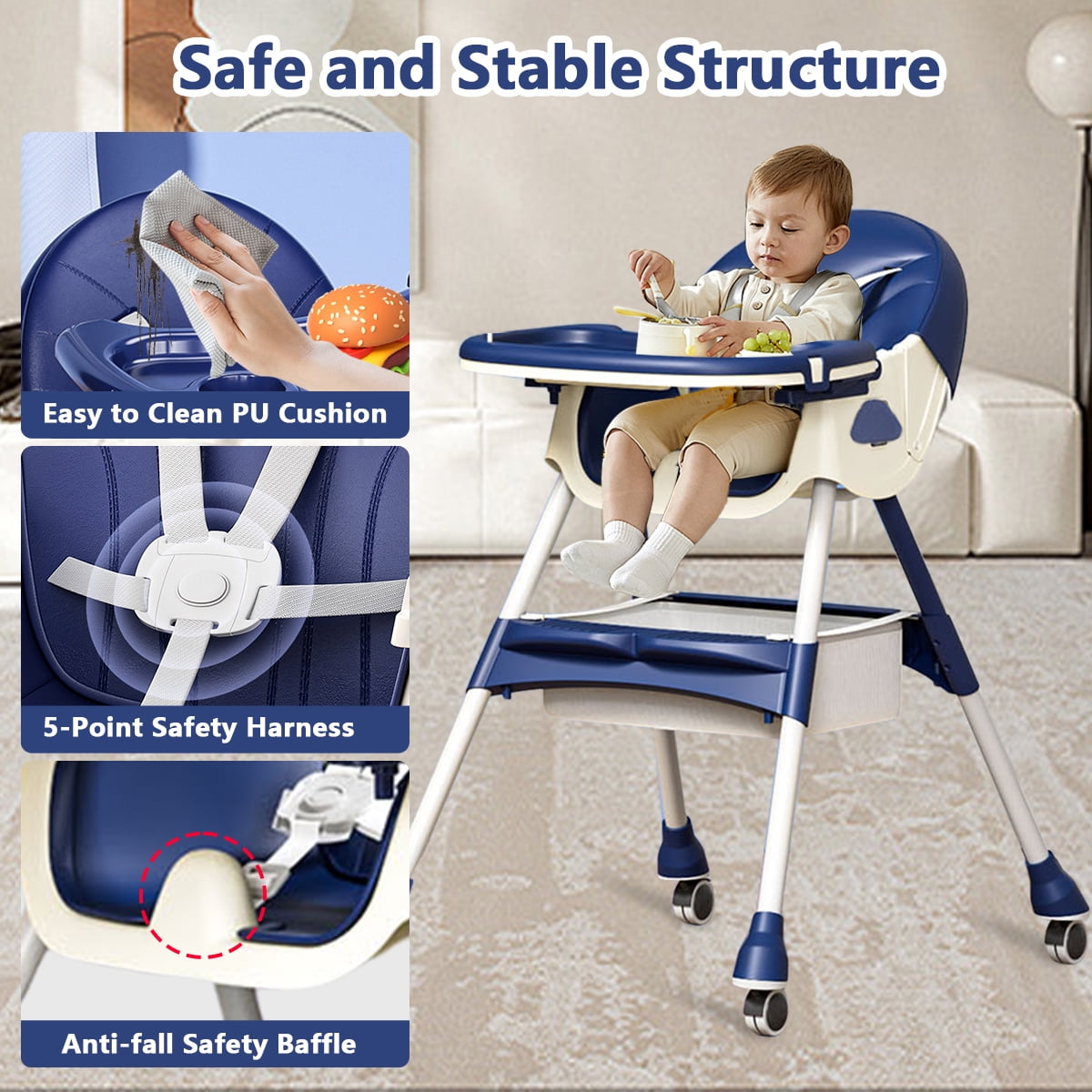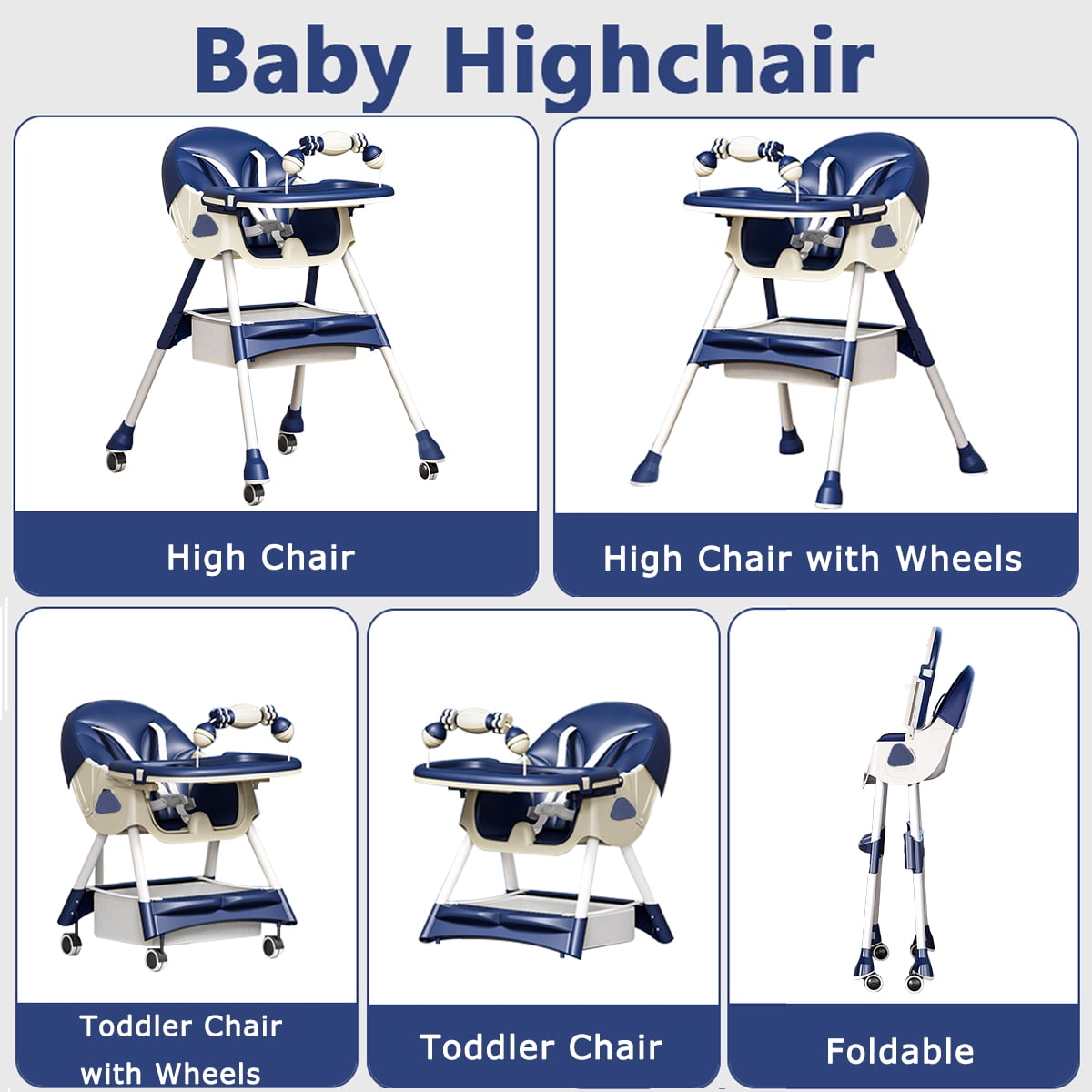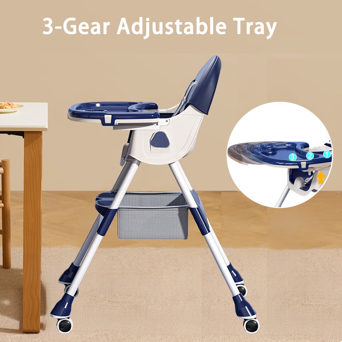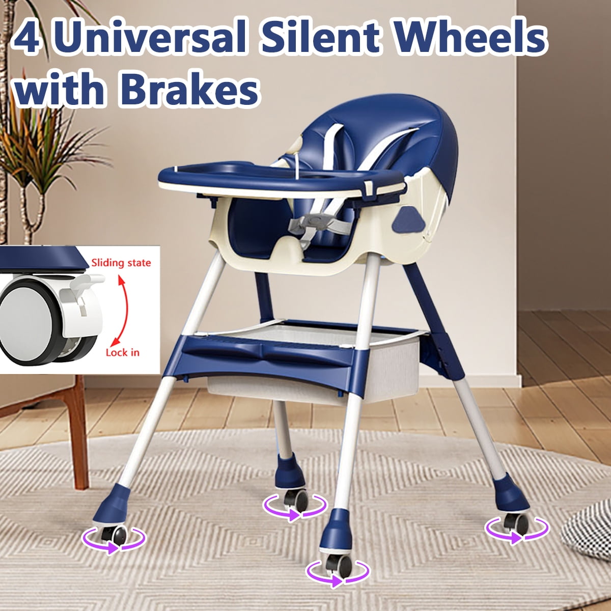 SolarSoda Portable High Chair with Wheels, Foldable Travel High Chair for Babies Toddlers, Blue