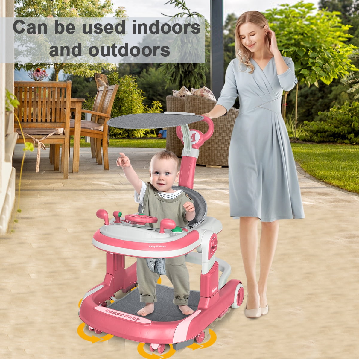AJONALAA 4-in-1 Musical Infant Baby Walker with Wheels, Push Walker for Girls Boys, Red
