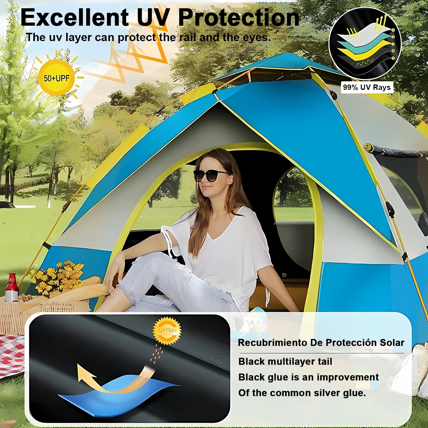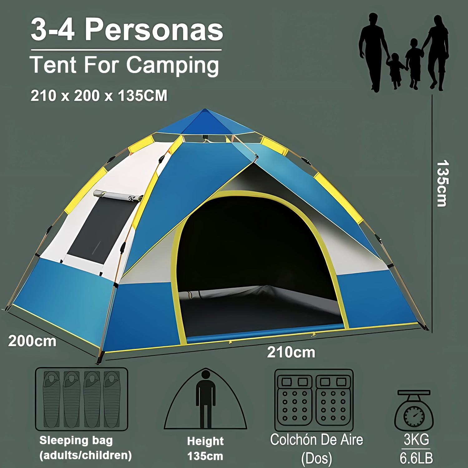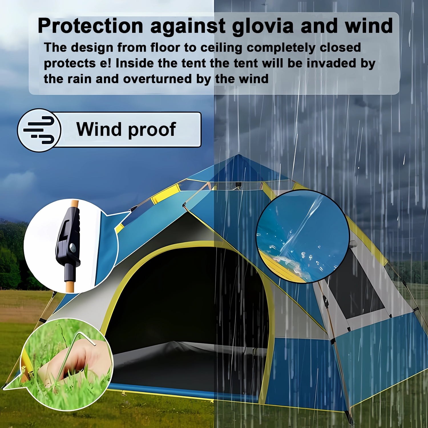 Experience effortless camping with this quick-opening tent. Setting it up is a breeze, saving you time and effort. Its spacious design easily accommodates a whole family. Made with durable materials, it offers reliable protection against rain and sun. The double-door structure ensures good airflow, while the built-in storage bag keeps your essentials organized. Conveniently portable with its included carrying bag, this tent is your perfect companion for enjoyable weekends outdoors.