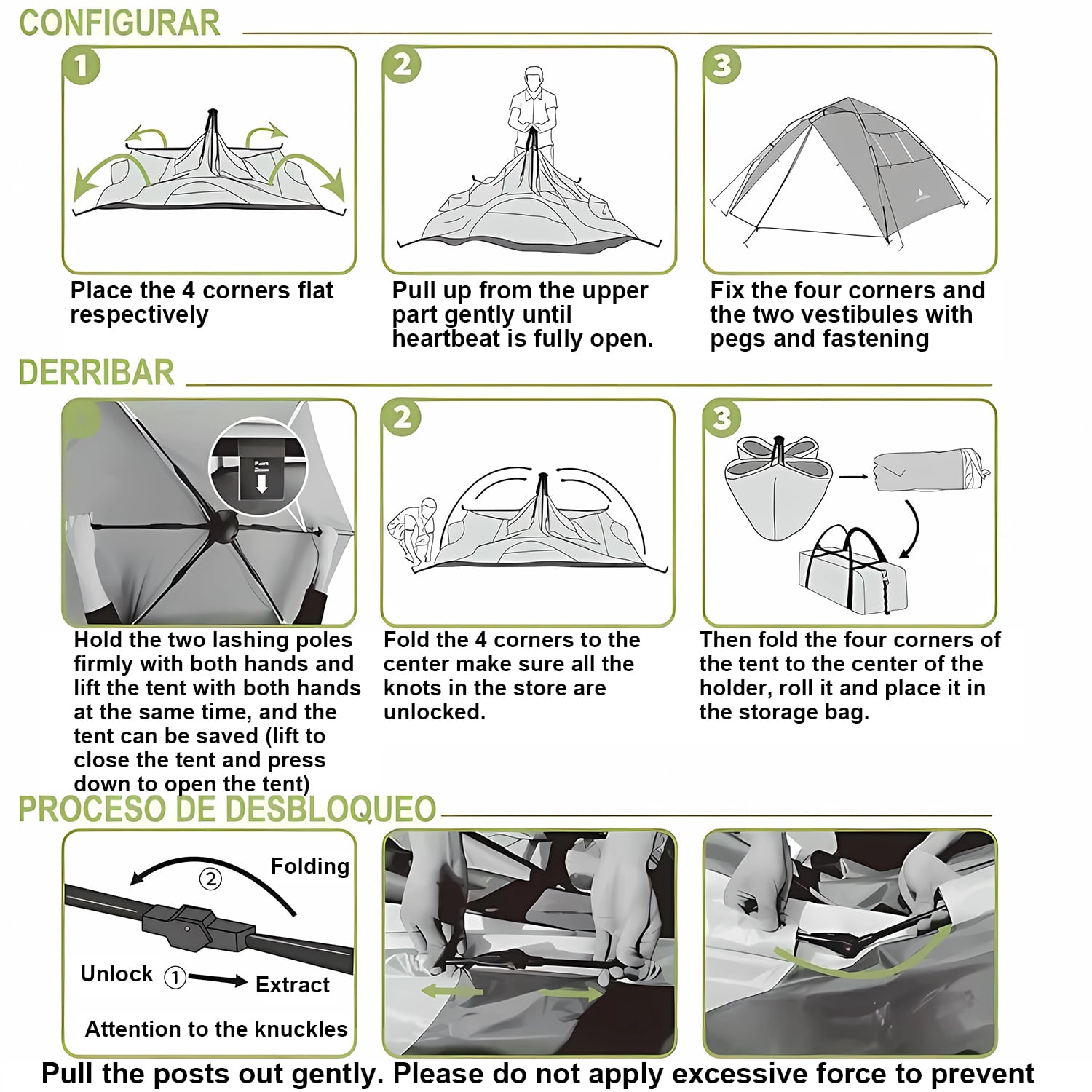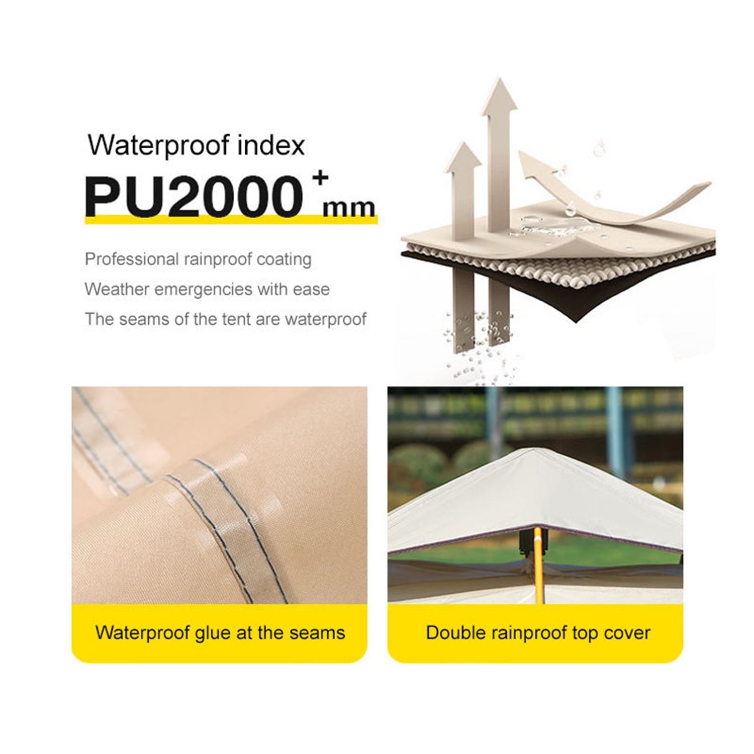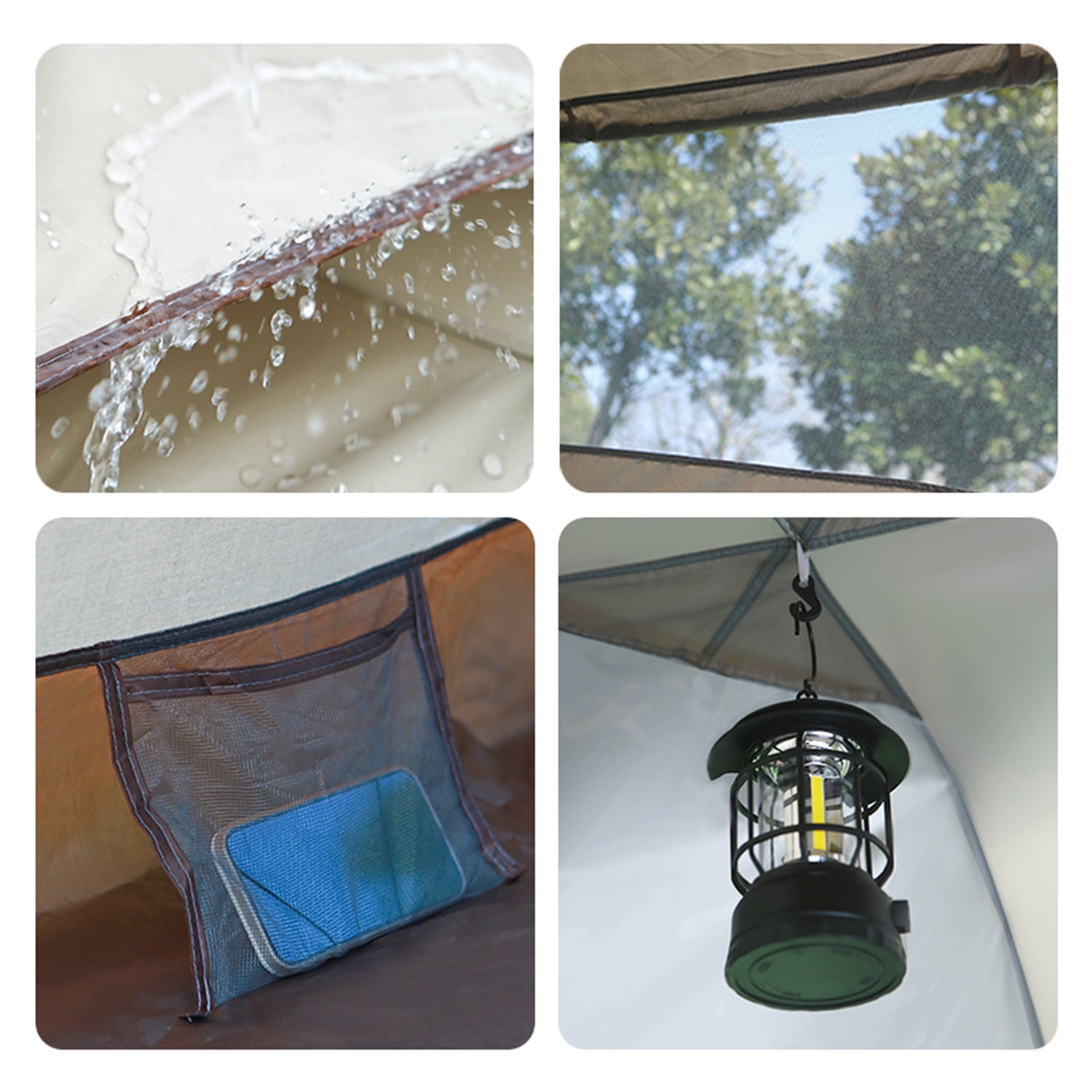 Experience effortless camping with this quick-opening tent. Setting it up is a breeze, saving you time and effort. Its spacious design easily accommodates a whole family. Made with durable materials, it offers reliable protection against rain and sun. The double-door structure ensures good airflow, while the built-in storage bag keeps your essentials organized. Conveniently portable with its included carrying bag, this tent is your perfect companion for enjoyable weekends outdoors.