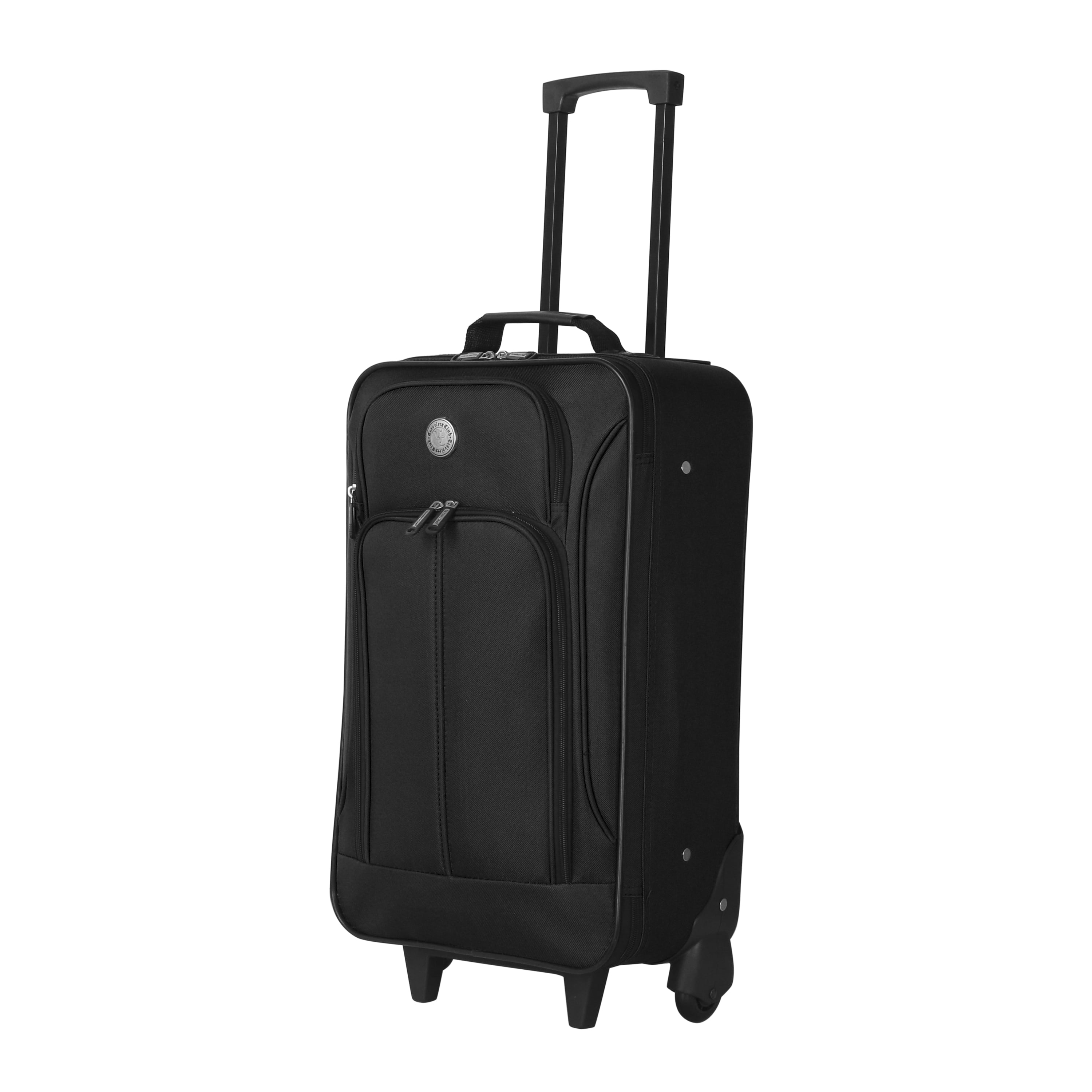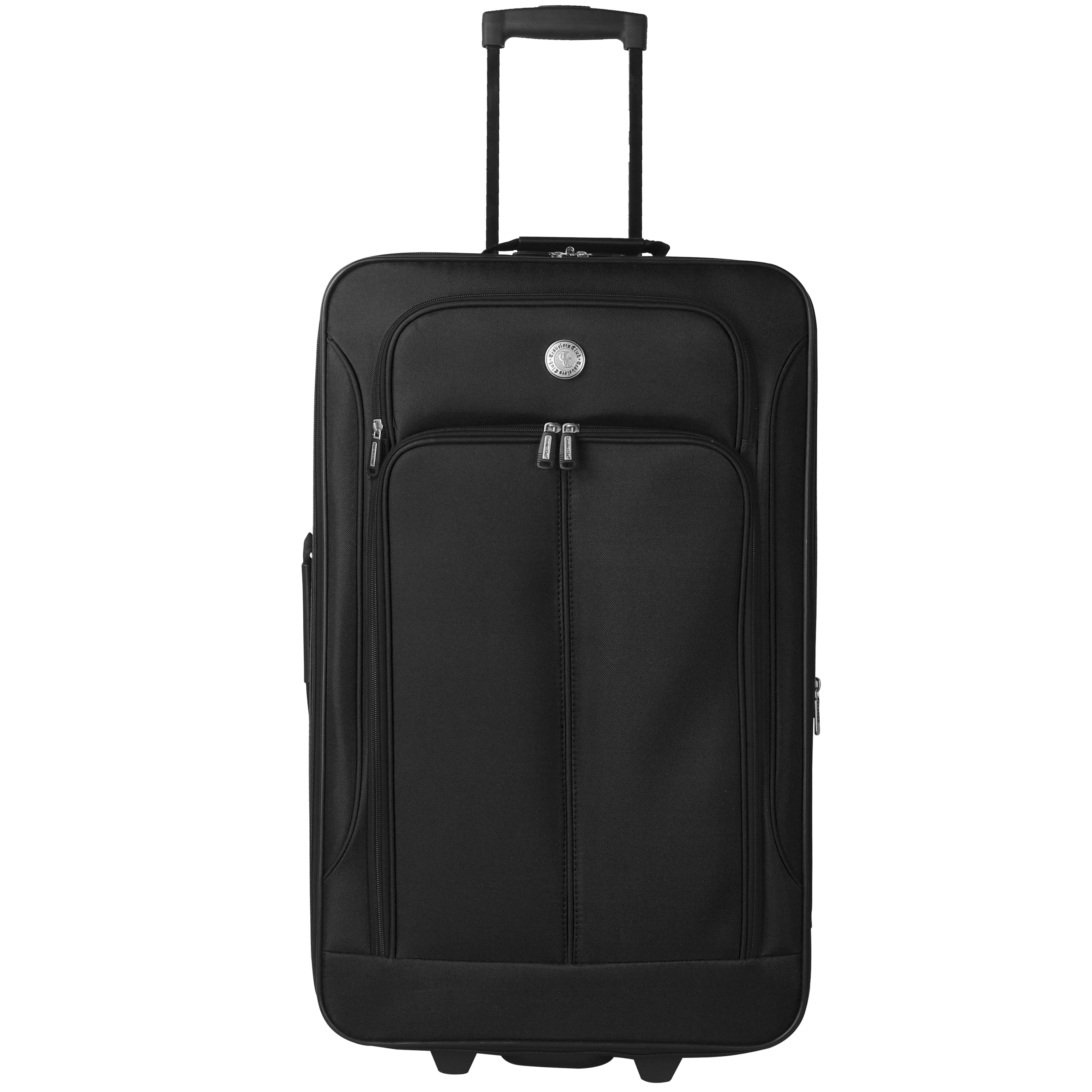 Travelers Club Euro Value II Basic 4-Piece Luggage Set. These value suitcases are made from a rich, 600 denier polyester. The set features a large, expandable 26″ expandable upright, a 24″ rolling duffel, a 20″ non-expandable rolling carry-on and a small boarding bag. The 20″ rolling carry-on meets most airline carry-on regulations. Size with the wheels 20.5″ x 13.5″ x 6.5″ and weighs only 5 lbs. A good starter set for the budget conscious.