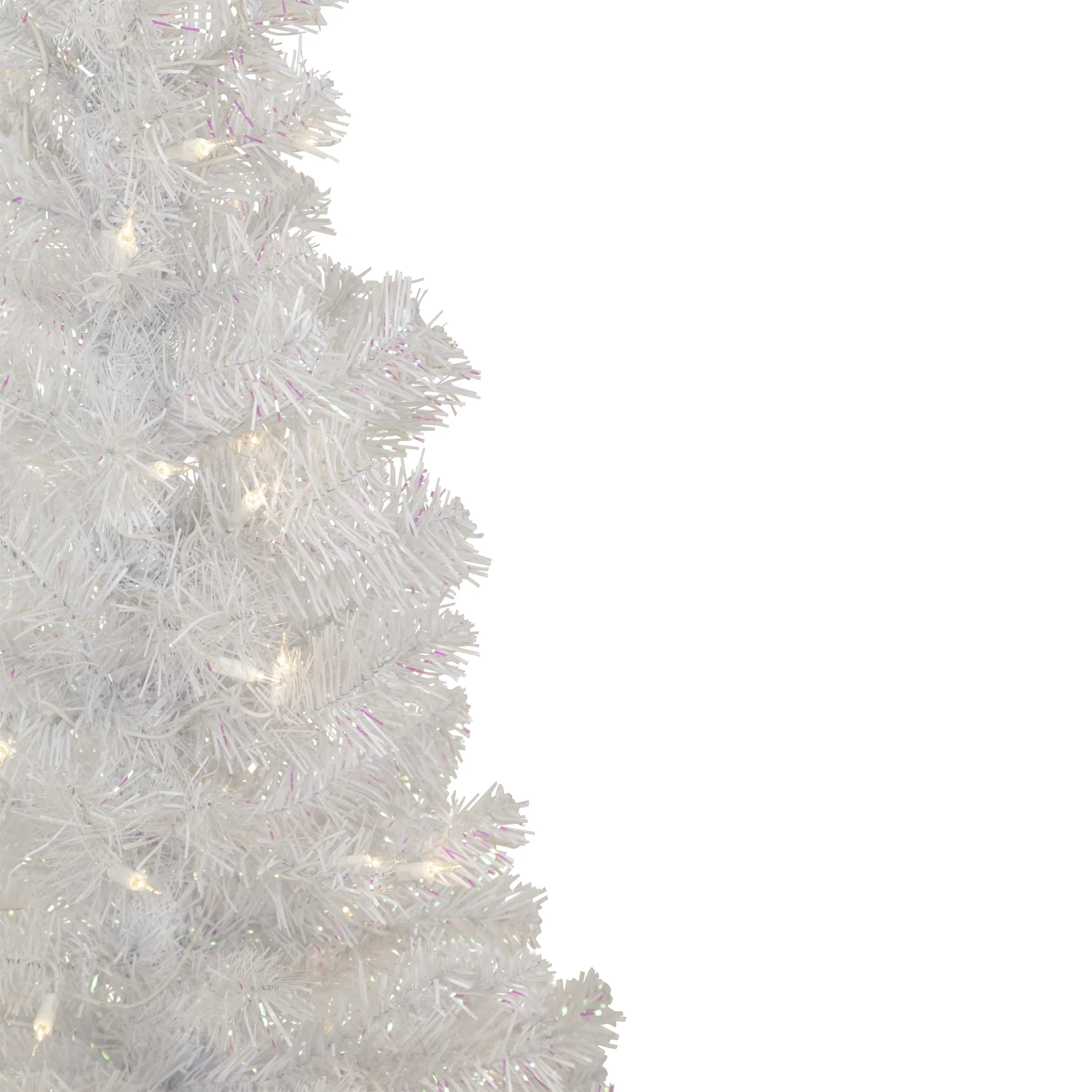 With its immaculate color and generous profile the Rockport White Pine Christmas tree glistens with wintry beauty. It is a designer-inspired alternative to a traditional green tree with its dazzling white pine needles. The branches contain a mix of matte white and clear iridescent needles that create texture and add depth to the tree. The iridescent needles beautifully reflect the soft glow from the blue incandescent mini lights. This tree is perfect for a quick and easy setup and ideal for corners or tabletops. Product Features: Pre-lit with 70 lights Bulb size: mini Bulb type: incandescent 110 tips Slim profile tree Additional Product Features: If one bulb burns out the rest will stay lit Light sets on tree are UL listed for indoor or outdoor use however the tree itself is recommended for indoor use only Lights are equipped with Lamp Lock feature which makes them replaceable interchangeable and keep them from falling out Contains 1 plug with end connector Connector allows to stack multiple lighted items together (not to exceed 210 watts) 3-piece easy assembly (including stand) Includes a white plastic tree stand Wire gauge: 22 120 volts 60 hertz .24amps 28.8 watts Dimensions: 4′ high (from the base of the stand to the top of the tree) 24″ base diameter (at the widest point) Material(s): PVC/plastic/glass bulbs/wire Note: Branches are compressed for shipment and need to be fluffed out upon arrival to look like the photo.