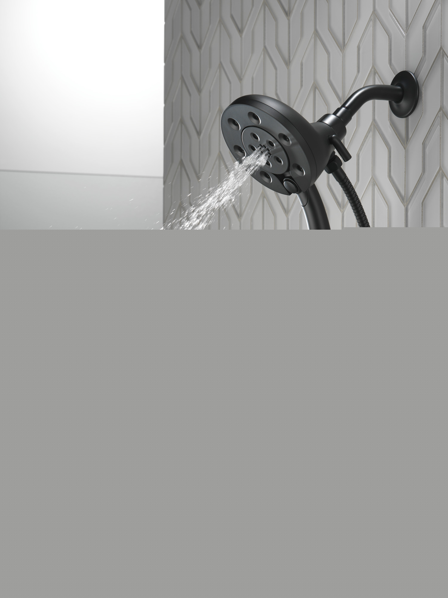 Features a detachable hand shower which can be used separately from or simultaneously with the shower head. This integrated dual-functionality gives you maximum flexibility without sacrificing warmth, as you can choose to have water streaming from the shower head only, the hand shower only or both the shower head and hand shower at once. Delta H2Okinetic Showers look different because they are different. Using advanced technology, H2Okinetic showers sculpt water into a unique wave pattern, giving you 3X the coverage of a standard shower head. The result is a shower that provides more coverage, more warmth and more intensity for a truly drenching shower experience. The pause setting gives you ample space for shaving, lathering and other shower tasks, then easily restarts the water with the temperature where you left off. This spray setting helps you conserve water, so you can worry less about depleting your supply of hot water – and you help the environment too. Create a luxurious shower experience with a Delta hand shower/shower head combination. Whether you’re remodelling your space or upgrading your existing setup, our hand shower/shower head combos will give you more flexibility and coverage in a variety of stunning styles. Coverage measured in accordance with EPA Water Sense Specification for shower heads, March 4, 2010.
