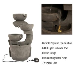 – CALMING ATMOSPHERE- This fountain cascades water down 4 tiers of clay-look pots to create a calming, zen-like atmosphere in your backyard. The top tier features LED lights to provide a soft, warm glow so you can enjoy your fountain, day or night.