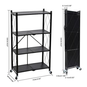 4-Tier Heavy Duty Foldable Metal Rack Storage Shelving Unit Utility Cart Suitable for Garage Kitchens, Black