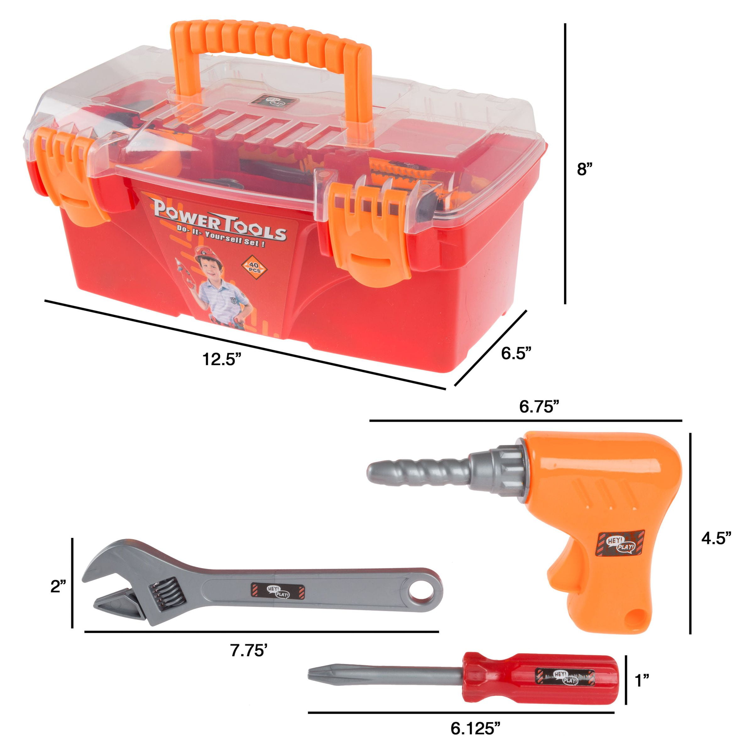 40-Piece Toy Tool Box Set-Pretend Play Construction Handyman Set for Boys and Girls-Includes Hammer, Screwdrivers, Drill, Bolts and More by Hey! Play!