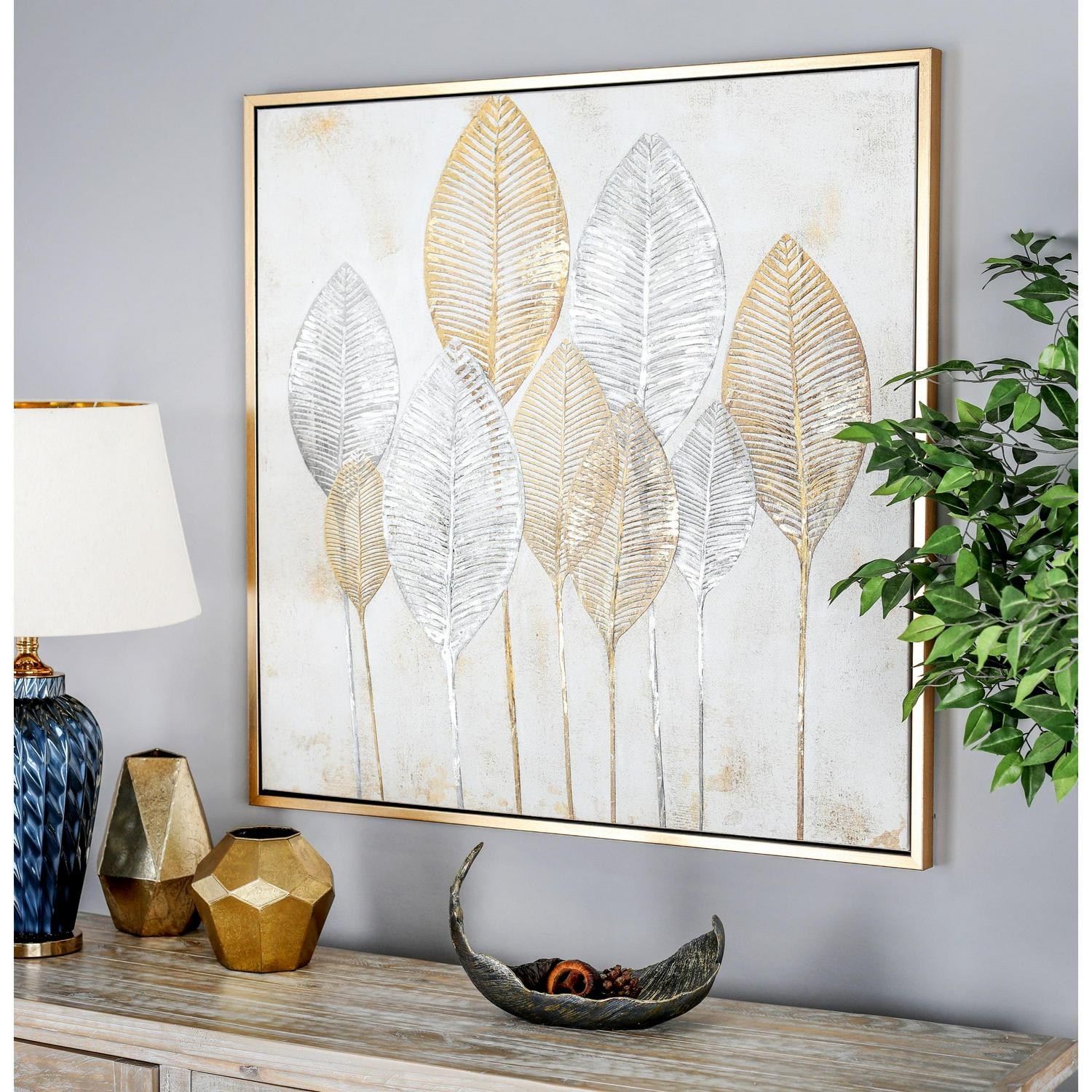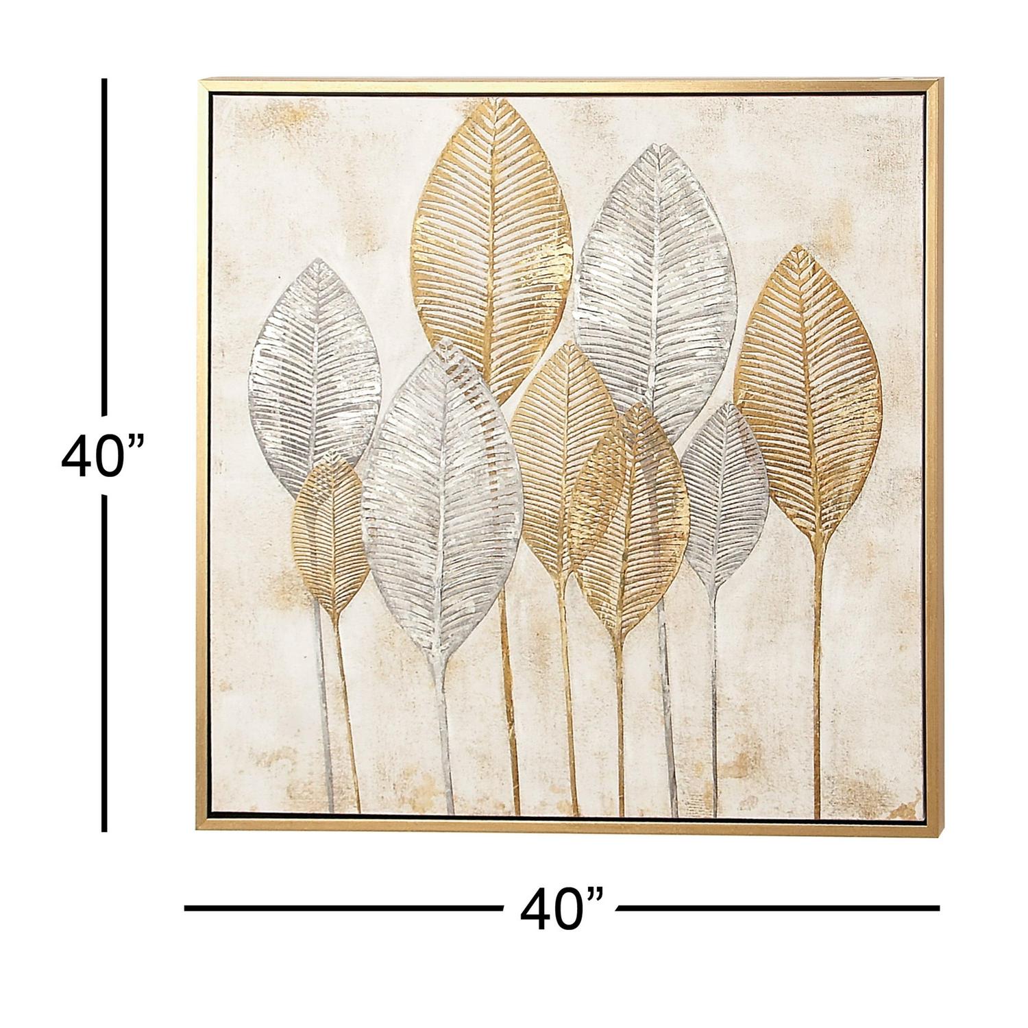 – 40″ x 40″ Leaf Framed Wall Art with Gold Frame, by CosmoLiving by Cosmopolitan makes a perfect addition to any home