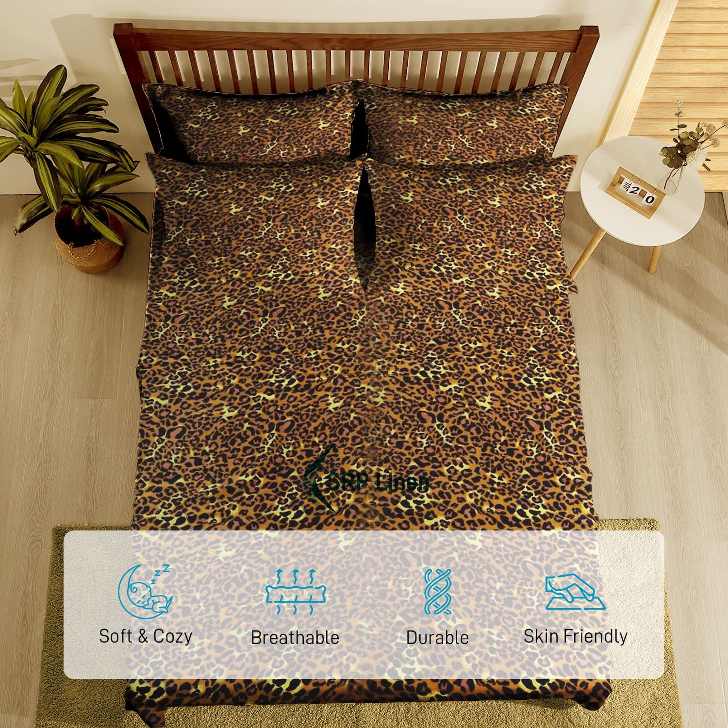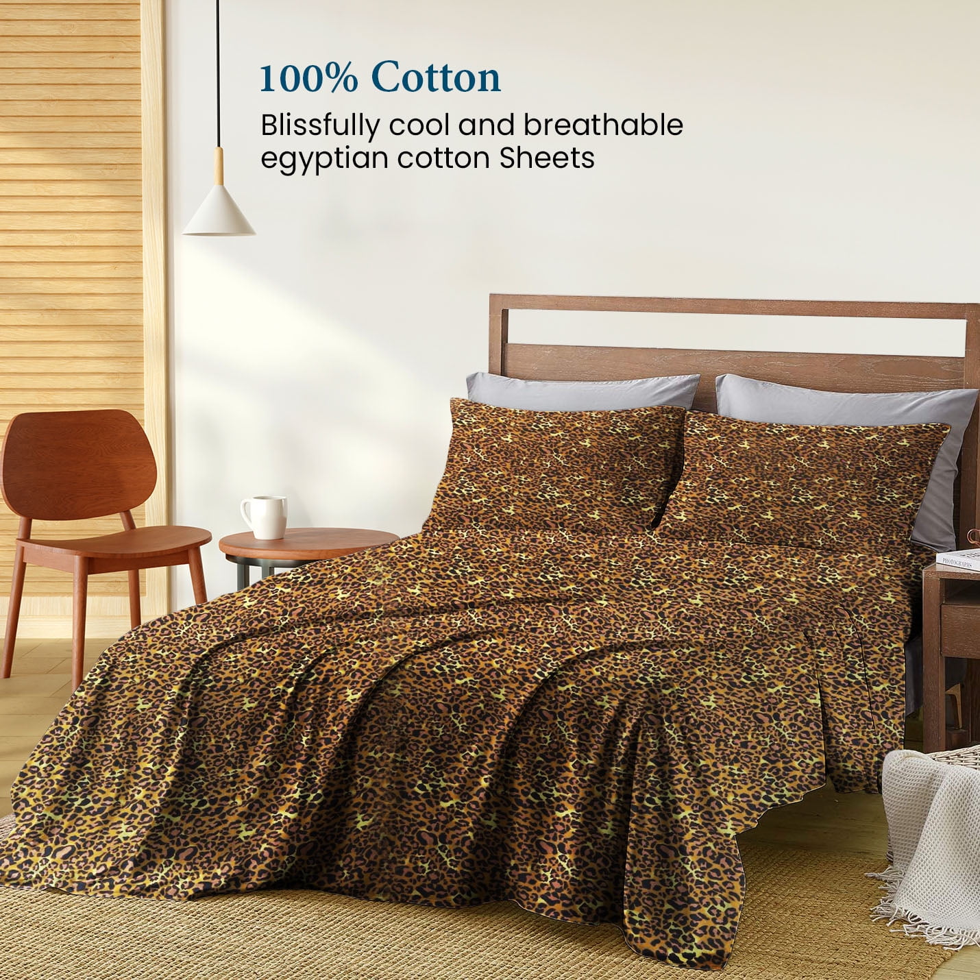 400 Thread Count 4 Piece Sheet Set Deep Pocket 8 Inch 100% Egyptian Cotton Color Leopard Print Size Queen