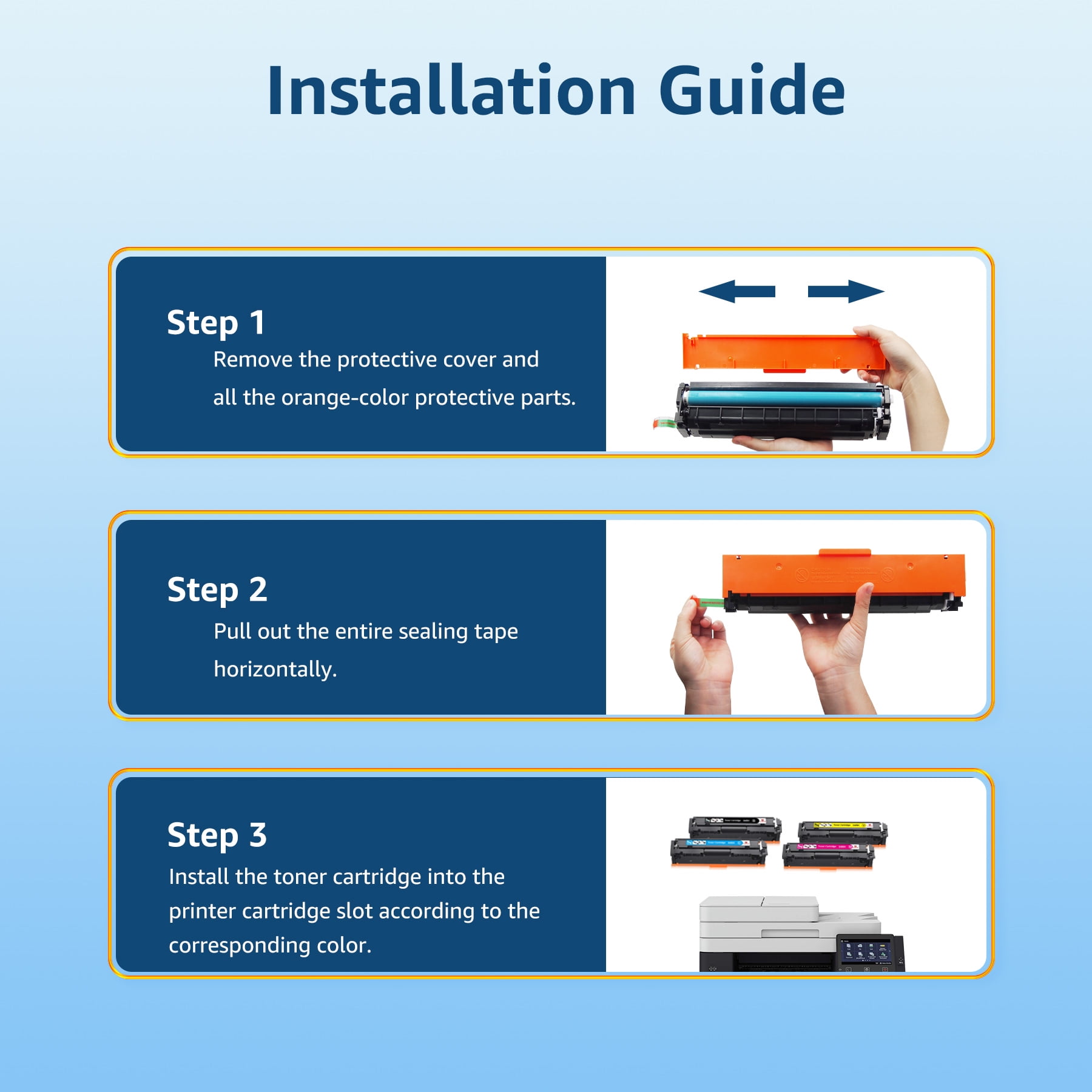 【With Chip】These compatible hp 414x toner are alread installed with chip to provide you with high-quality and perfect printout, No need to transfer orginal 414A or 414X toner chip to them. 【Package Content】414x toner cartridges 4 pack including 1 x Black hp 414x toner , 1 x Cyan hp 414x toner , 1 x Magenta hp 414x toner, 1 x Yellow hp 414x toner. 【Page Yield】7,500 pages per black 414X toner cartridge and 6,000 per color cartridge for 414X toner cartridge (at 5% coverage). 【Printer Compatibility】Compatible with HP Color Pro MFP M479fdw printer, Color Pro M454dw printer, Color Pro MFP M479fdn printer, Color Pro M454dn printer, Color Pro MFP M479dw printer, Pro M479fdw M479 M454 printer, Color Enterprise M455dn, Color Enterprise MFP M480f 【Flexible Applicability】Our compatible hp 414x toner cartridges 4 pack (W2020X W2021X W2022X W2023X) and also compatible with hp 414a toner cartridges 4 pack ( W2020A W2021A W2022A W2023A) High-quality compatible toner 414x multipack can provide clear text and graphics, print the color effect you want on the paper