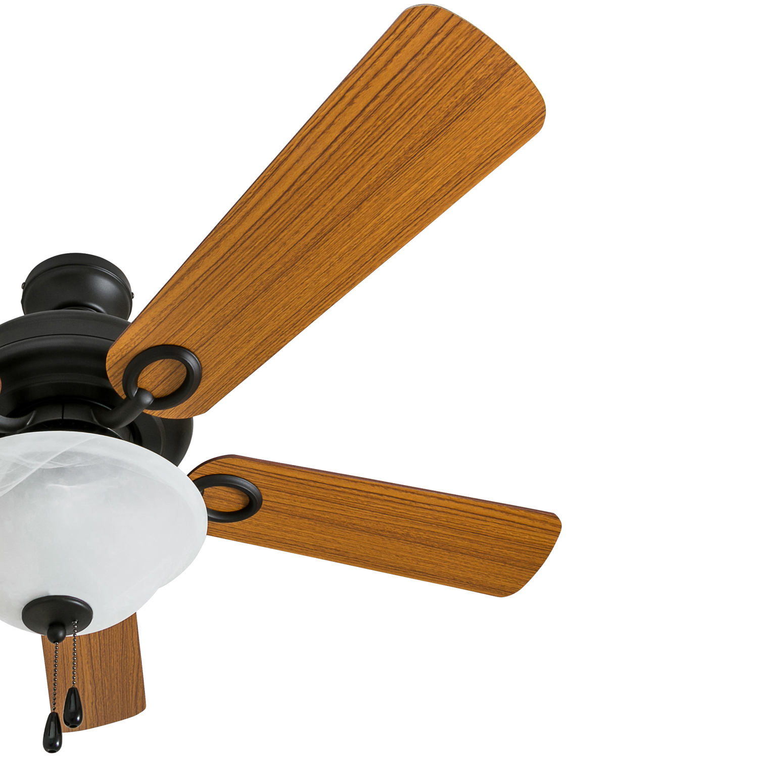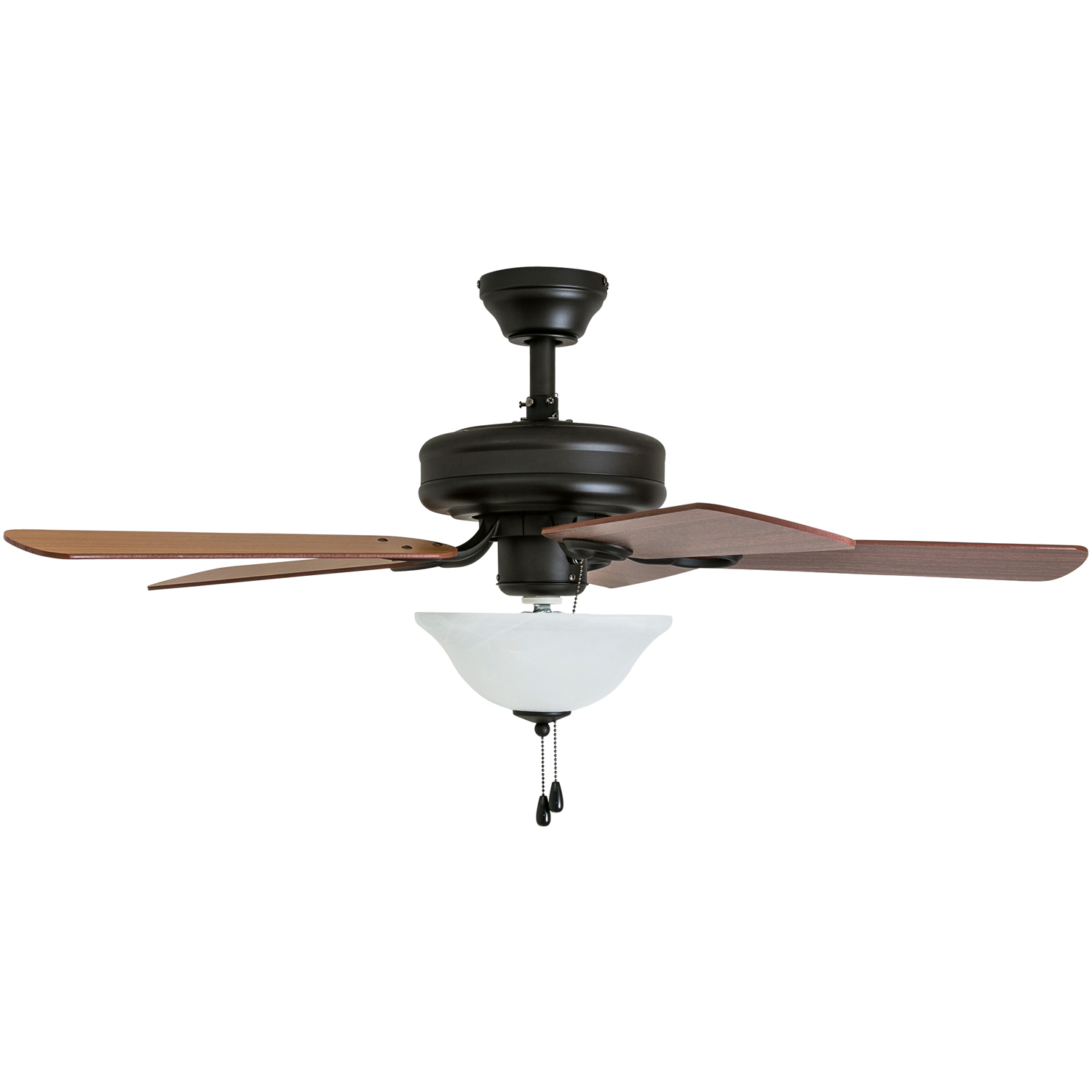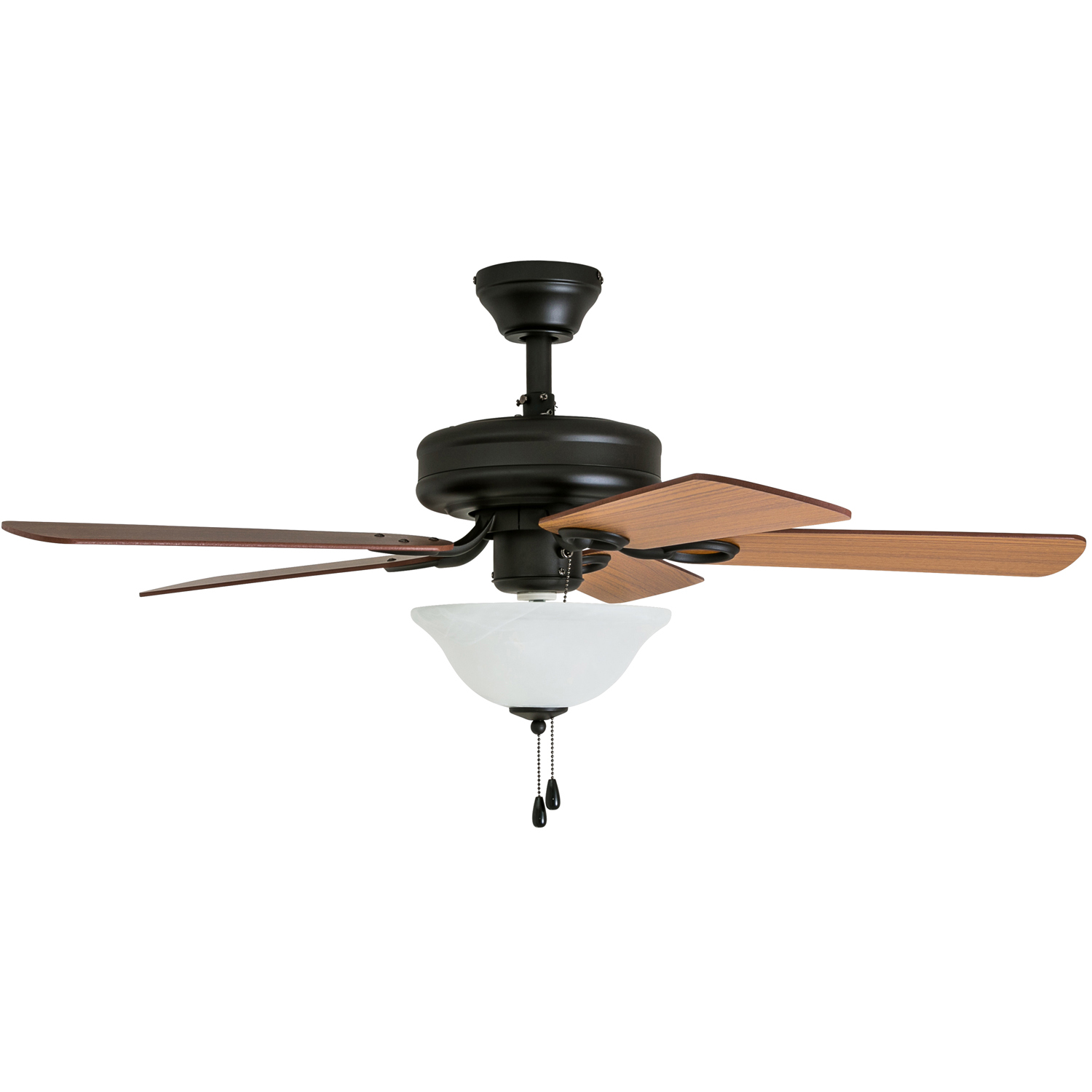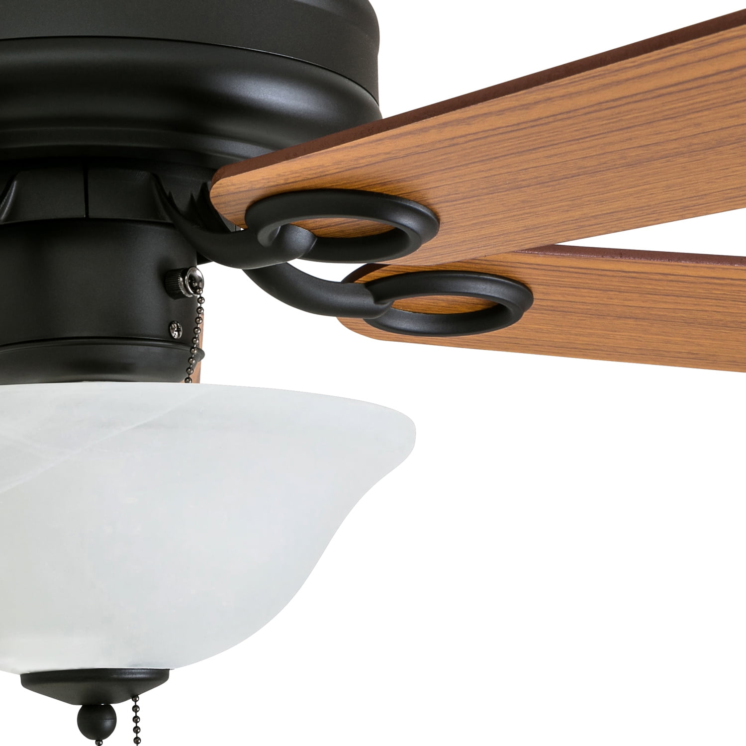 HIGH AIR-FLOW: Enjoy the cool breeze created by a ceiling fan! Three speeds allow for the perfect setting for your space. QUIET, REVERSIBLE MOTOR: Conveniently quiet, reversible motor. Can be run in the winter to aid in rotating warm air and cutting down on energy costs. MEDIUM SIZED ROOMS: Perfect for rooms around 350 square feet such as living rooms, bedrooms, dining rooms or family rooms. TWO-BLADE FINISHES: Get the perfect finish match with our reversible ceiling fan blades. Each side has a unique finish to compliment your space. 100% SATISFACTION GUARANTEED: Limited manufacturer’s warranty. You’ll love this ceiling fan!