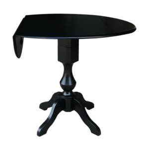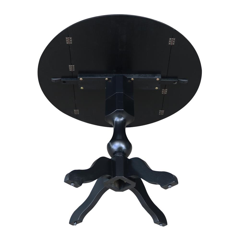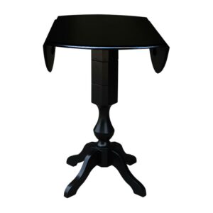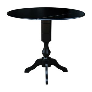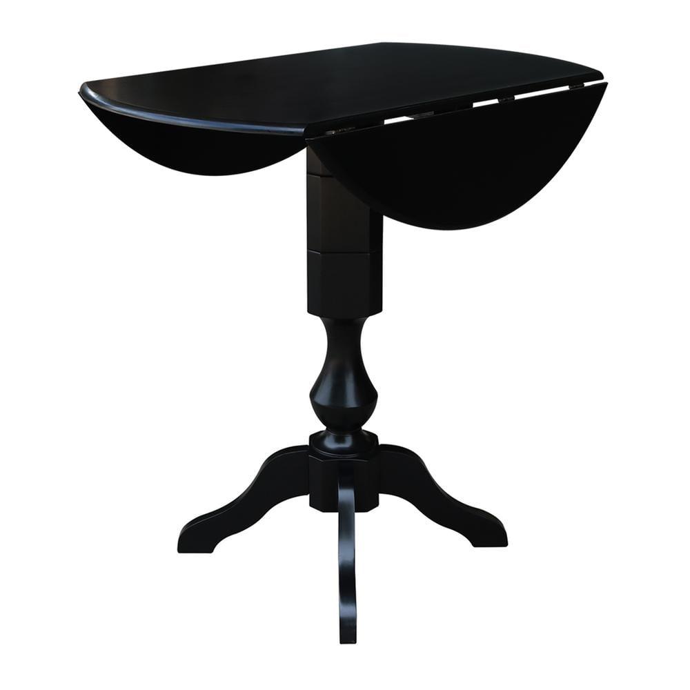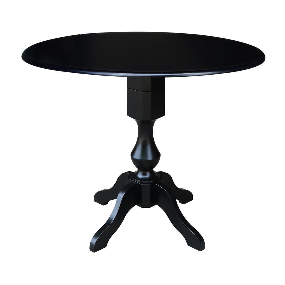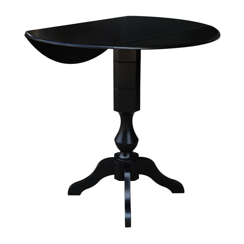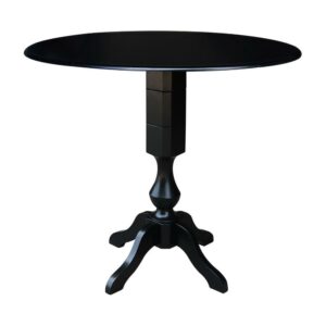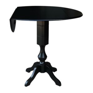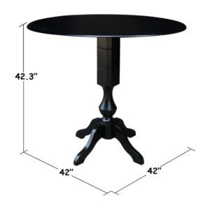 42 Round Solid Wood Black Dual Drop Leaf Pedestal Counter Height Table by International Concepts