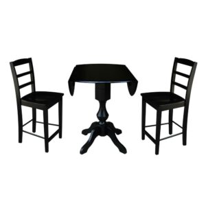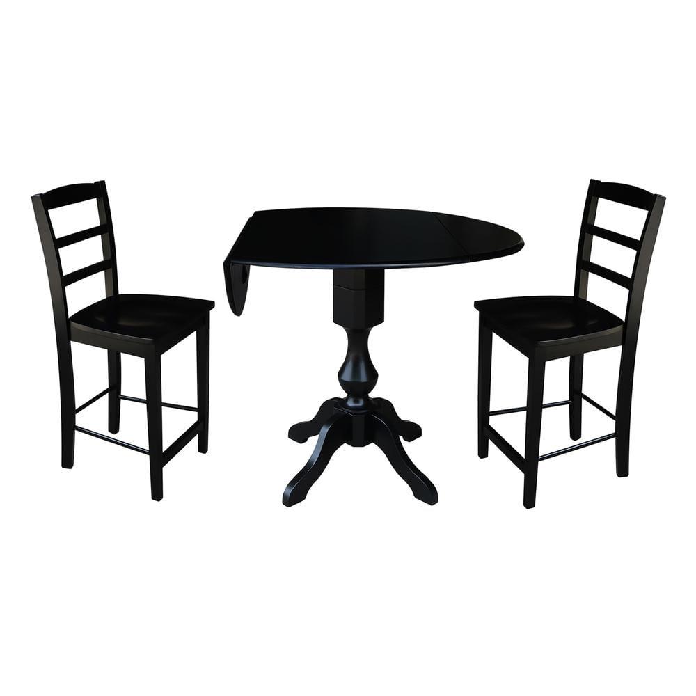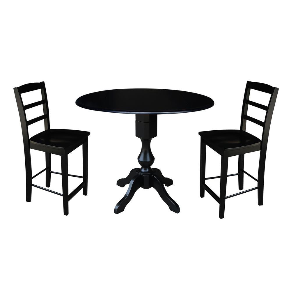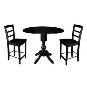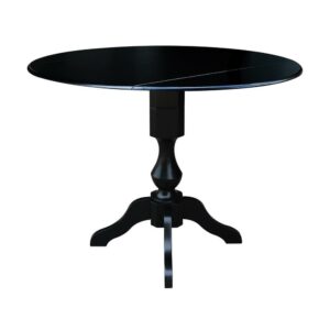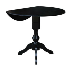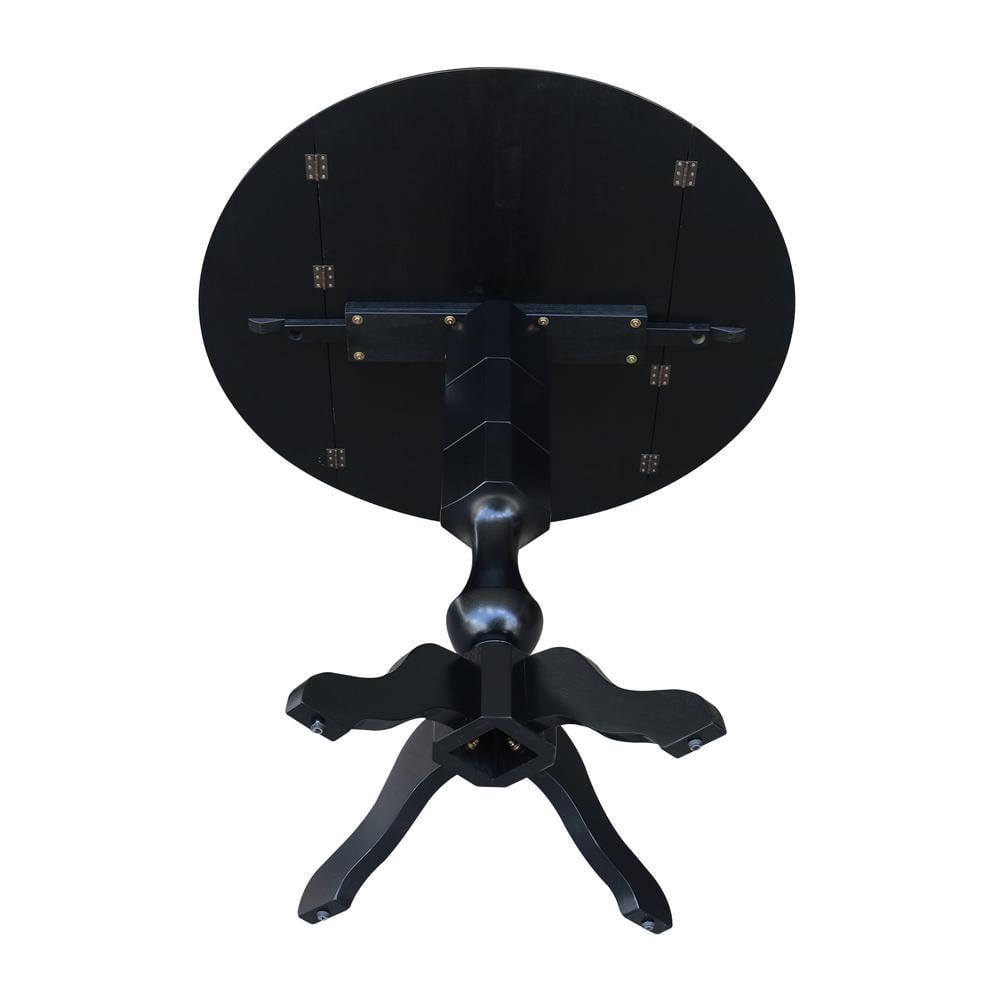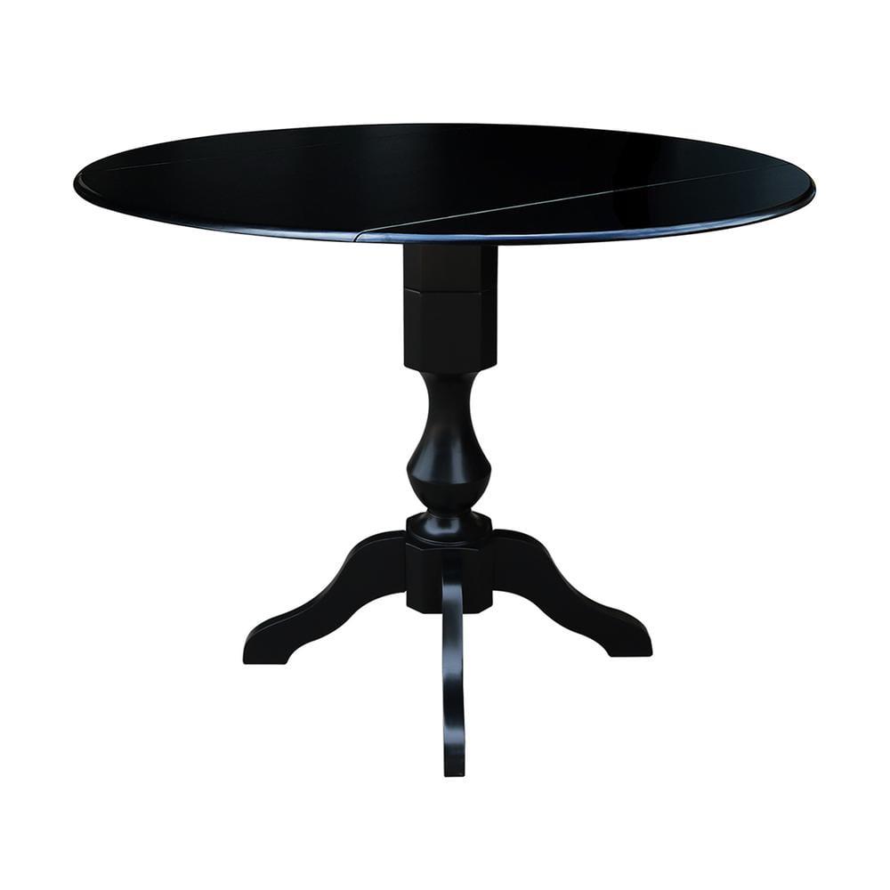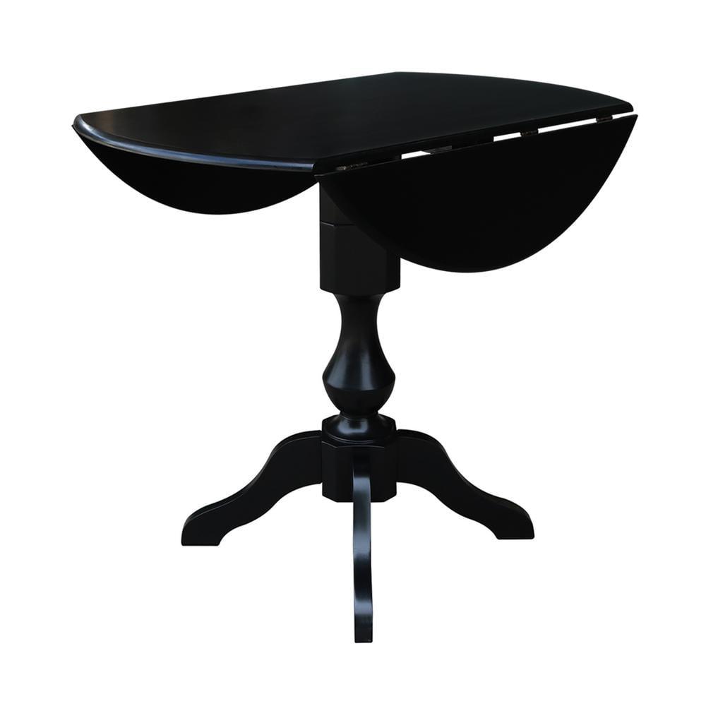 42 Round Solid Wood Black Dual Drop Leaf Pedestal Counter Height Table by International Concepts