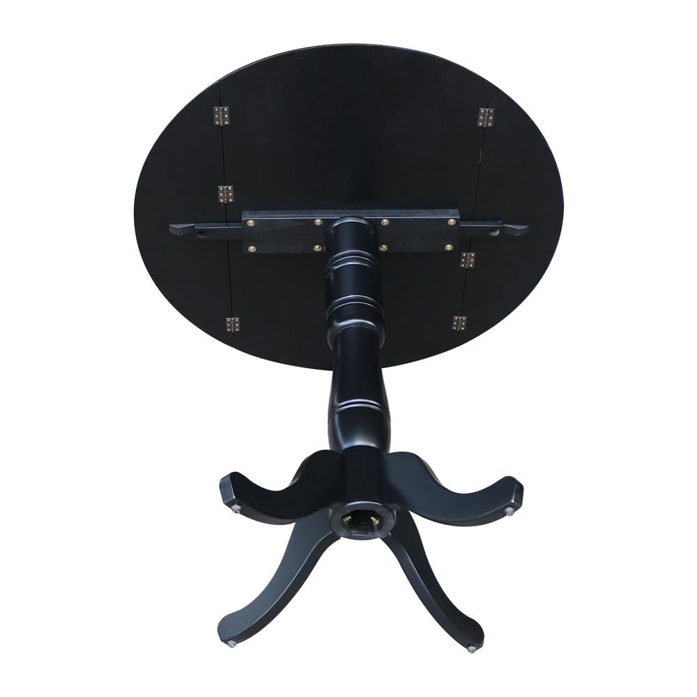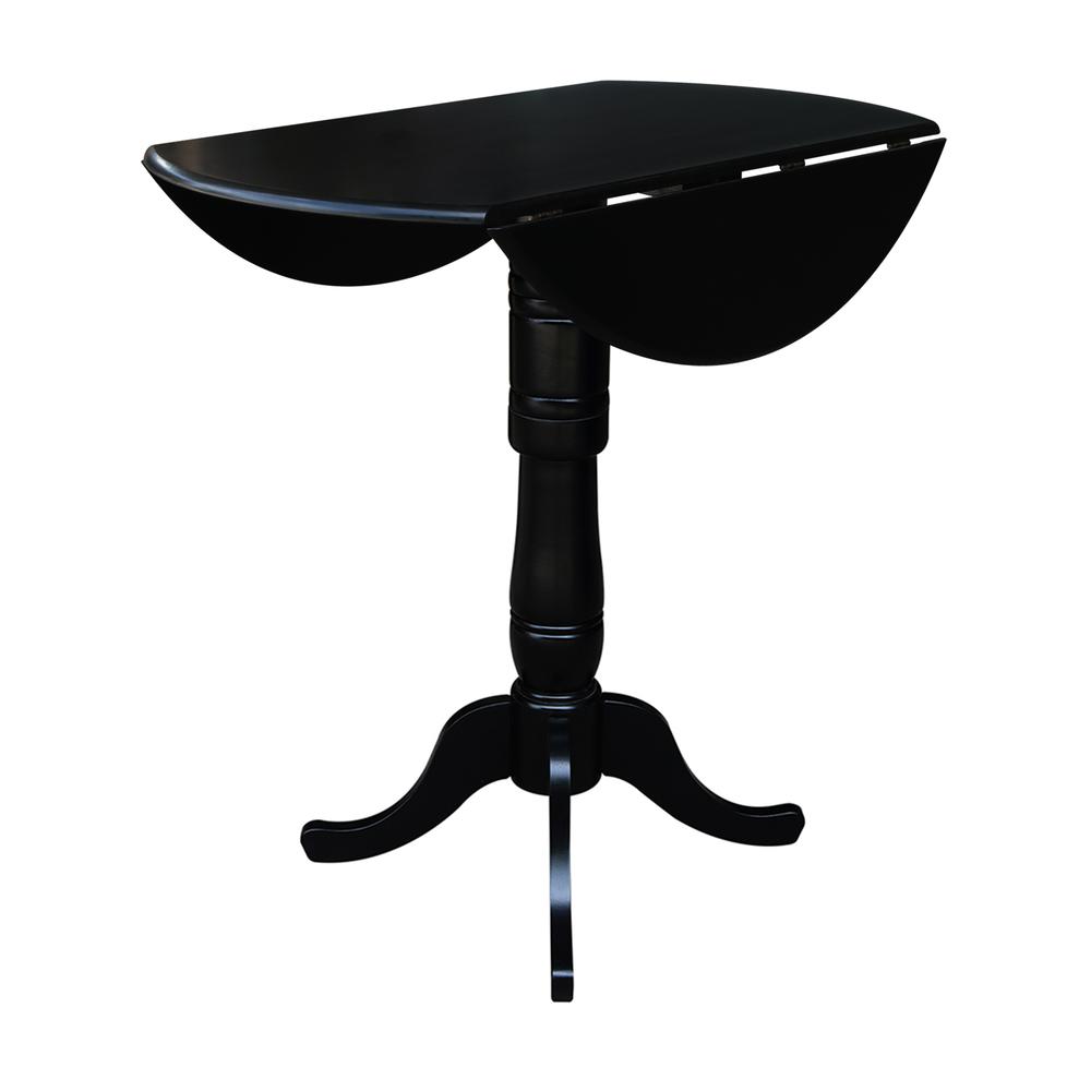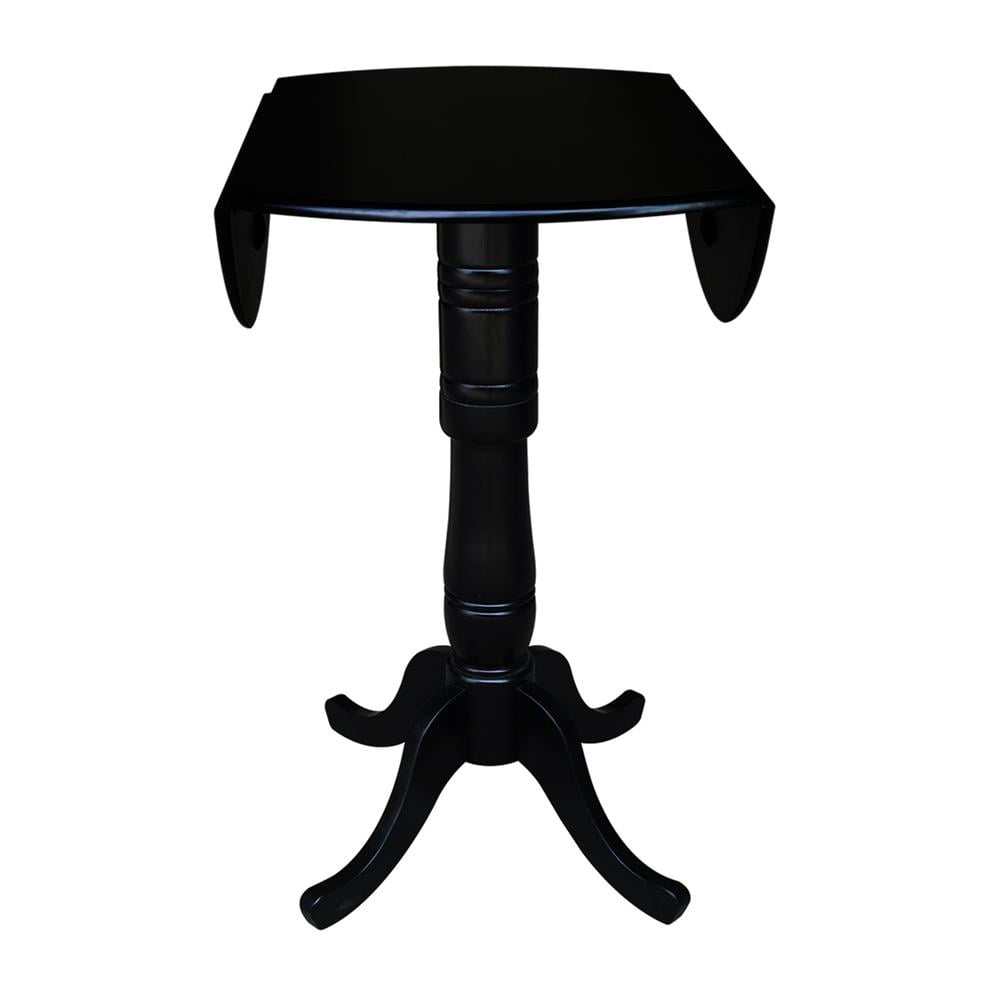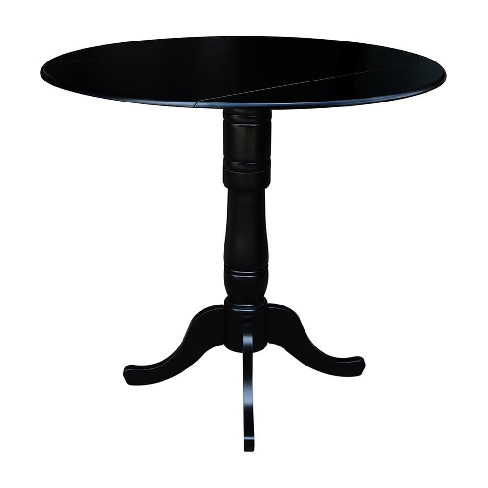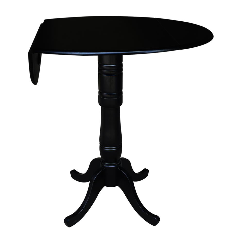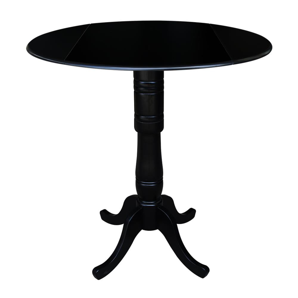 42″ Round Solid Wood Dual Drop Leaf Pedestal Table in Black – 41.5″H Bar Height by International Concepts