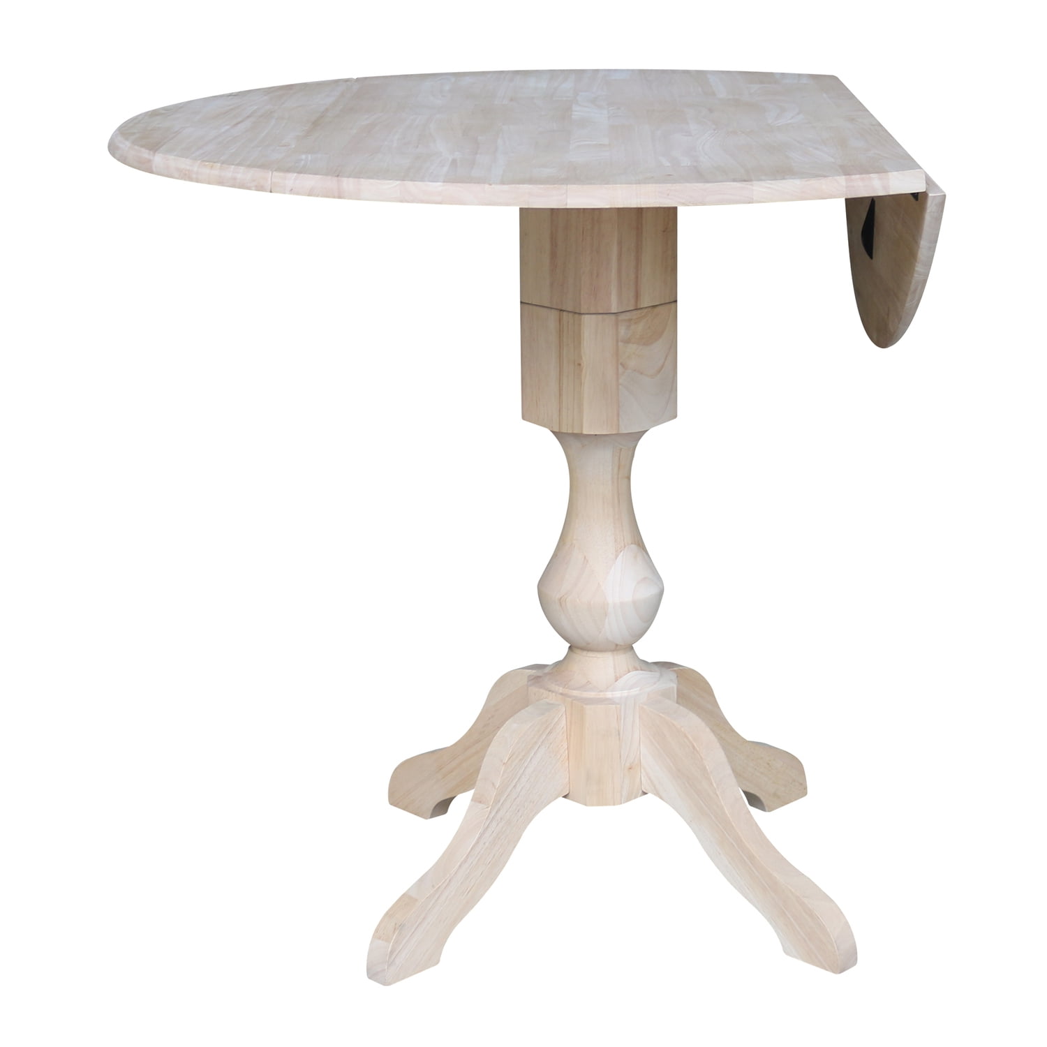 42″ Round Solid Wood Dual Drop Leaf Pedestal Table – Unfinished – 36.3″H Counter Height by International Concepts