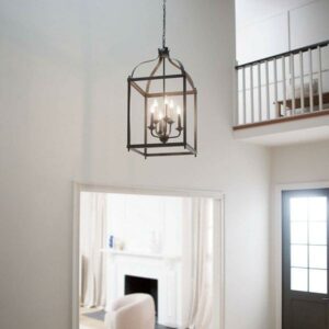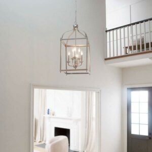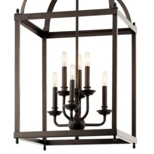 Kichler Lighting-42568NI-Collection: Larkin, Material: Steel, Finish Color: Brushed Nickel, Width: 18″, Height: 36.25″, Length: 25.75″, Chain Length: 72″, Lamping Type: Incandescent, Number Of Bulbs: 6, Wattage: 60 Watts, Dimmable: No, Moisture Rating: Dry Rated, Desc: This 6 light foyer pendant cage from the Larkin collection creates a strong, linear silhouette. The Black finish and steel form of this design will effortlessly accent your home. Chain Length: 72.00. ,-Larkin – 6 Light X-Large Cage Foyer with Traditional Design-36.25 inches tall by 18 inches wide-Brushed Nickel Finish -Traditional Installation