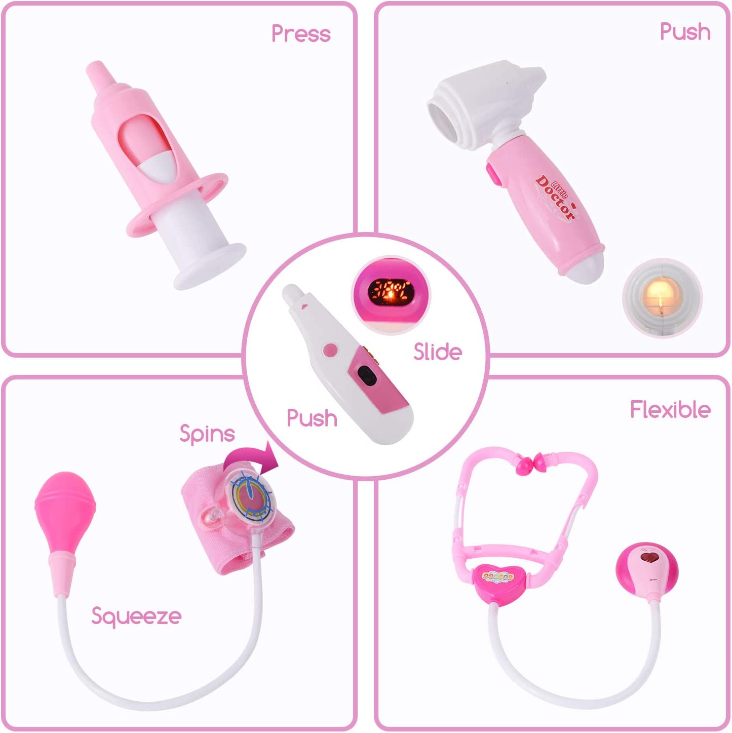 Your child may aspire to become a beautician, florists, a chef and so on. And all these dreams start building up since their childhood days. If they ever want to be a doctor or so, then gift the, a kids doctor kit for helping them to realize their dream, It comes with all the essentials that a doctor would use. In spite of being replicas, it emulates the real feeling of the equipment. SPECIFICATION: Color: Blue/Pink Material: Plastic + Electronic Components Product Dimensions:8.5 x 5.9 x 5.7 inches Item Weight: 1.76pound