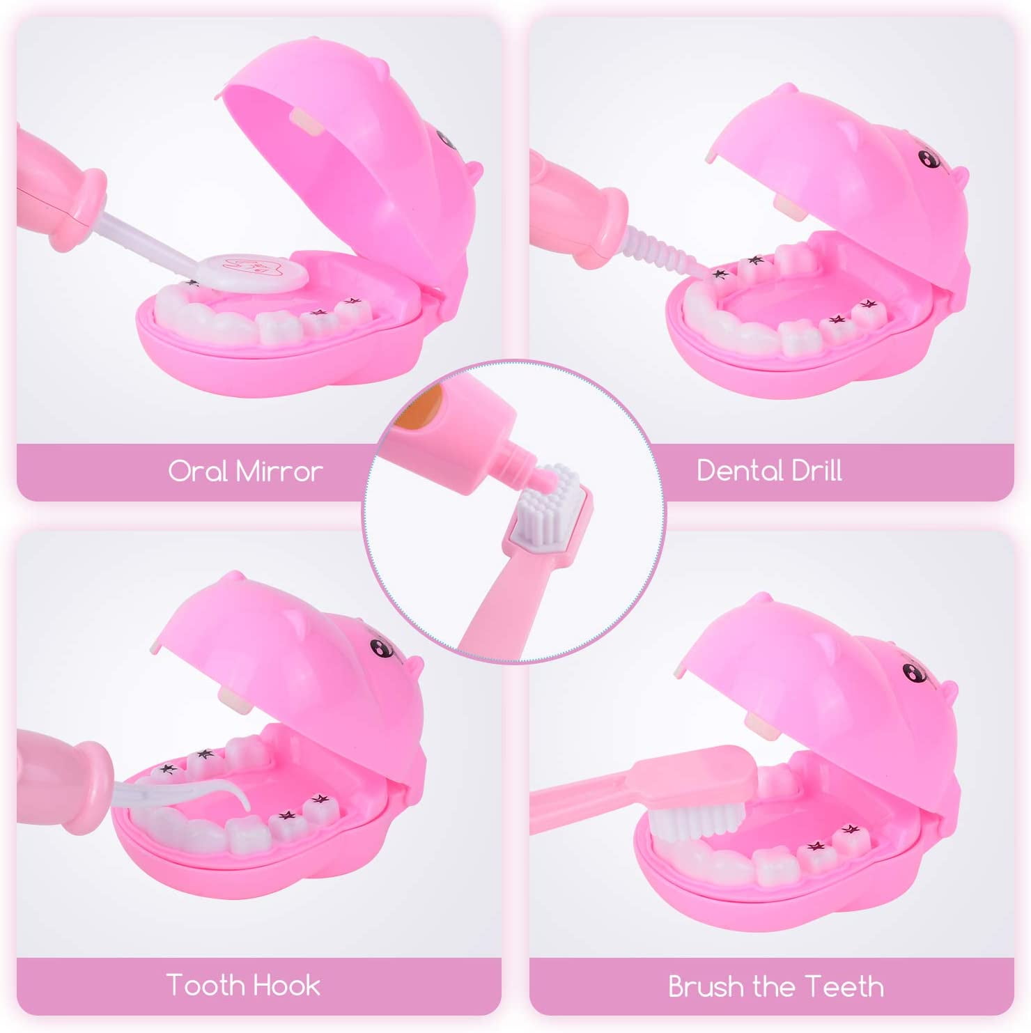 44 Pieces Educational Doctor Pretend Play Toy Set Dentist Medical Kit with Storage Box & Lights & Sounds for Doctor Roleplay-Pink