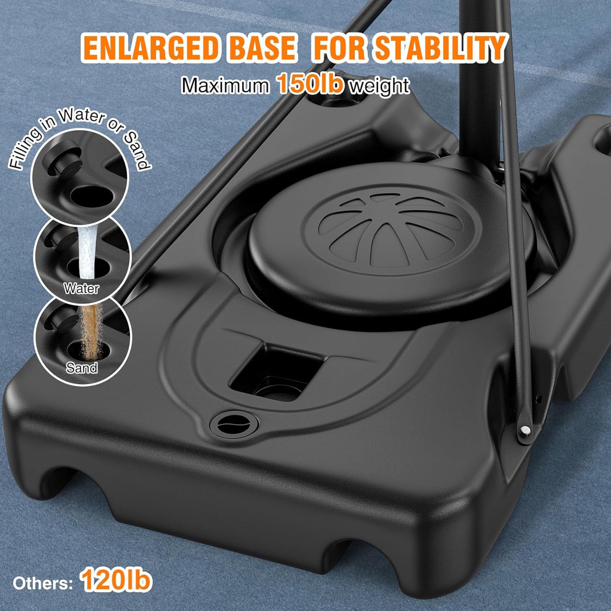 🏀【FUN FOR KIDS & ADULTS】: The adjustable height feature makes our basketball hoop outdoor suitable for different age groups. It provides entertainment for kids after school and distraction from technology for more exercise, and for adults to relax after work. This basketball hoop is perfect for fostering relationships among family and friends. 🏀【ADJUSTABLE HEIGHT 4.43FT-10FT】: The lift system of the adjustable basketball hoop has 11 levels of height adjustment and provides flexibility in usage. You can install it indoors or outdoors like in the driveway, backyard, front yard, park, playground, garage, gym, etc. Available height range 7.55ft to 10ft with three poles installed, 4.43ft to 6.4ft with two poles installed. 🏀【HIGH-STRENGTH BASE & STABLE CONSTRUCTION】: Our basketball goal system features a solid base that can be filled with water or sand to ensure excellent stability and safety for every shot. The triangular structure formed by the pole and base provides exceptional stability during play, preventing the hoop from tipping over and ensuring a secure experience. 🏀【DURABLE MATERIAL】: Built to withstand the test of time, our outdoor basketball hoop is constructed with premium materials. The shatterproof backboard, shock-absorption hoop, thicken solid PE net, and anti-rust steel poles and hardware all contribute to its durability and longevity. 🏀【EASY INSTALLATION】: Putting together the portable basketball hoop is a breeze with labeled parts and clear, easy-to-follow instructions. Additionally, there is an assembly video available online for further assistance.