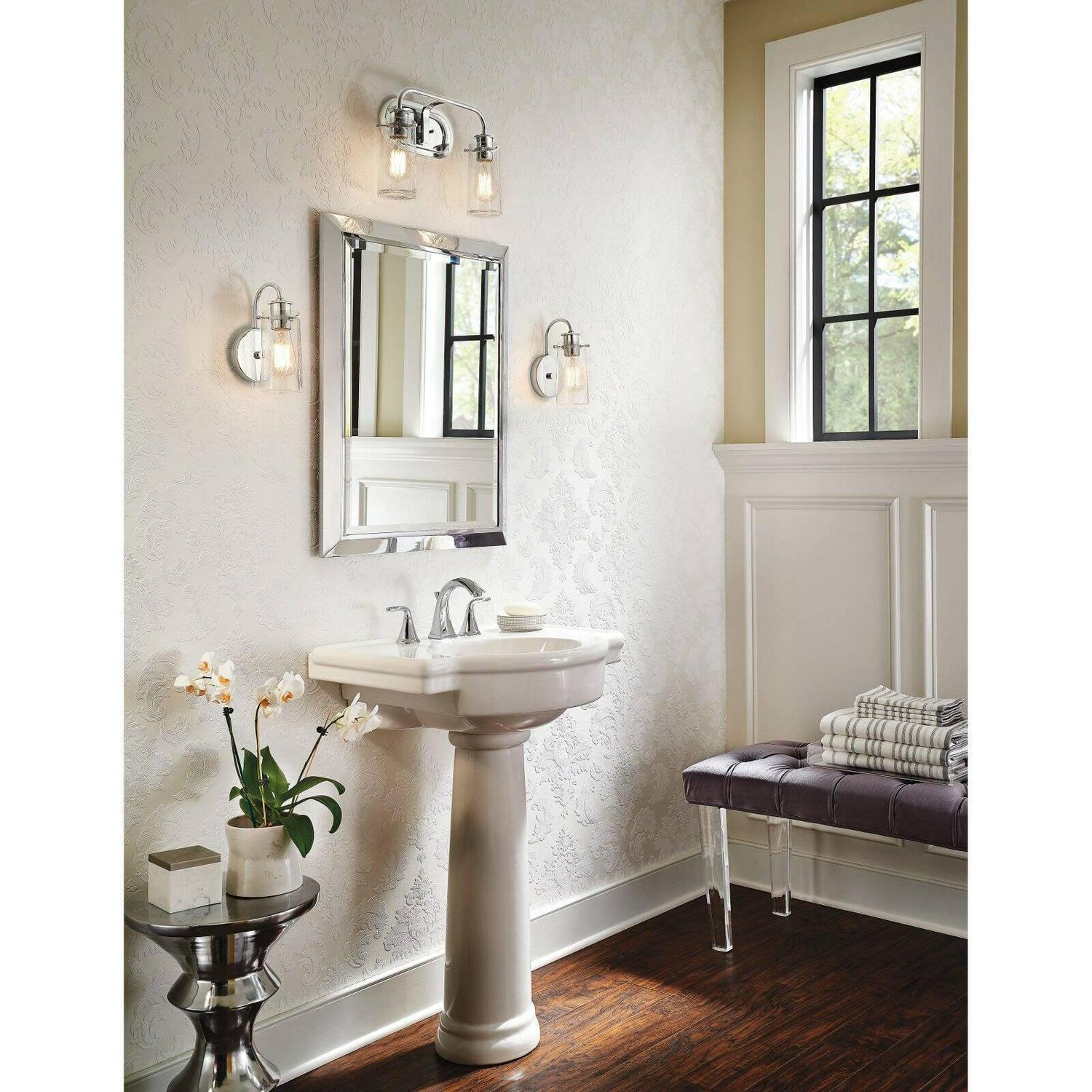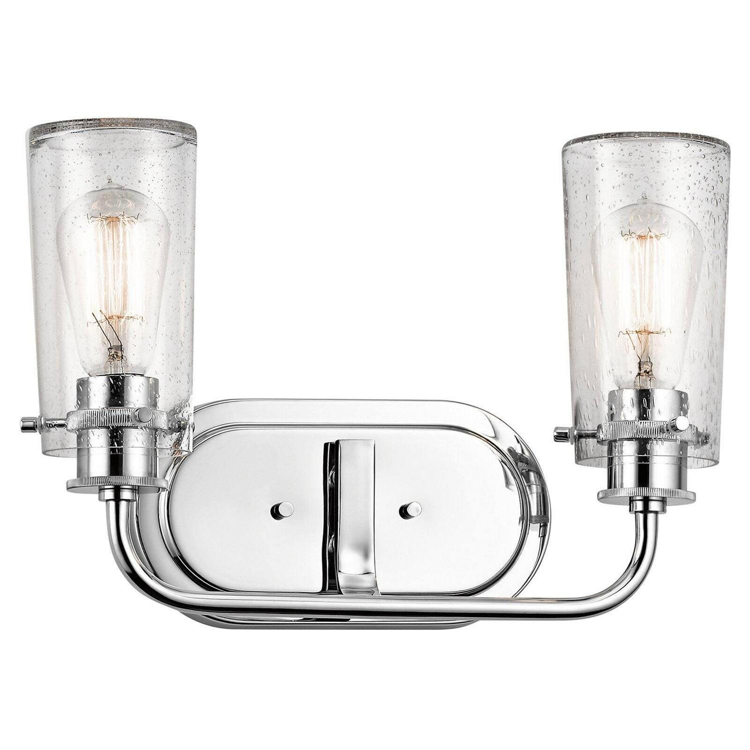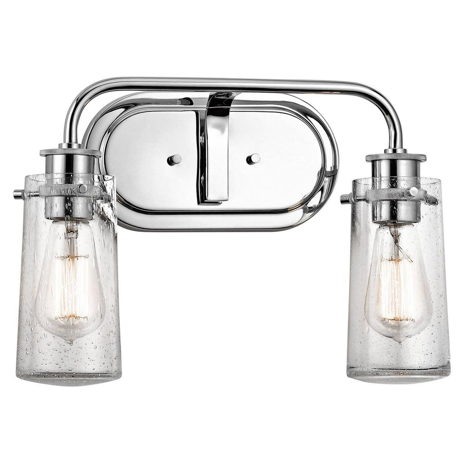 Kichler Lighting-45458OZ-Collection: Braelyn, Material: Steel, Finish Color: Olde Bronze, Width: 14.75″, Height: 10.25″, Depth: 5.5″, Height From Outlet Box: 2.5″, Backplate Width: 8″, Backplate Length: 4.75″, Lamping Type: Incandescent, Number Of Bulbs: 2, Wattage: 60 Watts, Dimmable: No, Moisture Rating: Damp Rated, Desc: UL>,-Braelyn – 2 Light Bath Vanity Approved for Damp Locations – with Vintage Industrial inspirations – 10.25 inches tall by 14.75 inches wide-Olde Bronze Finish