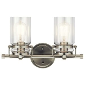 45688CPZ-Kichler Lighting-Brinley – 2 Light Bath Vanity Approved for Damp Locations – with Vintage Industrial inspirations – 10 inches tall by 15.75