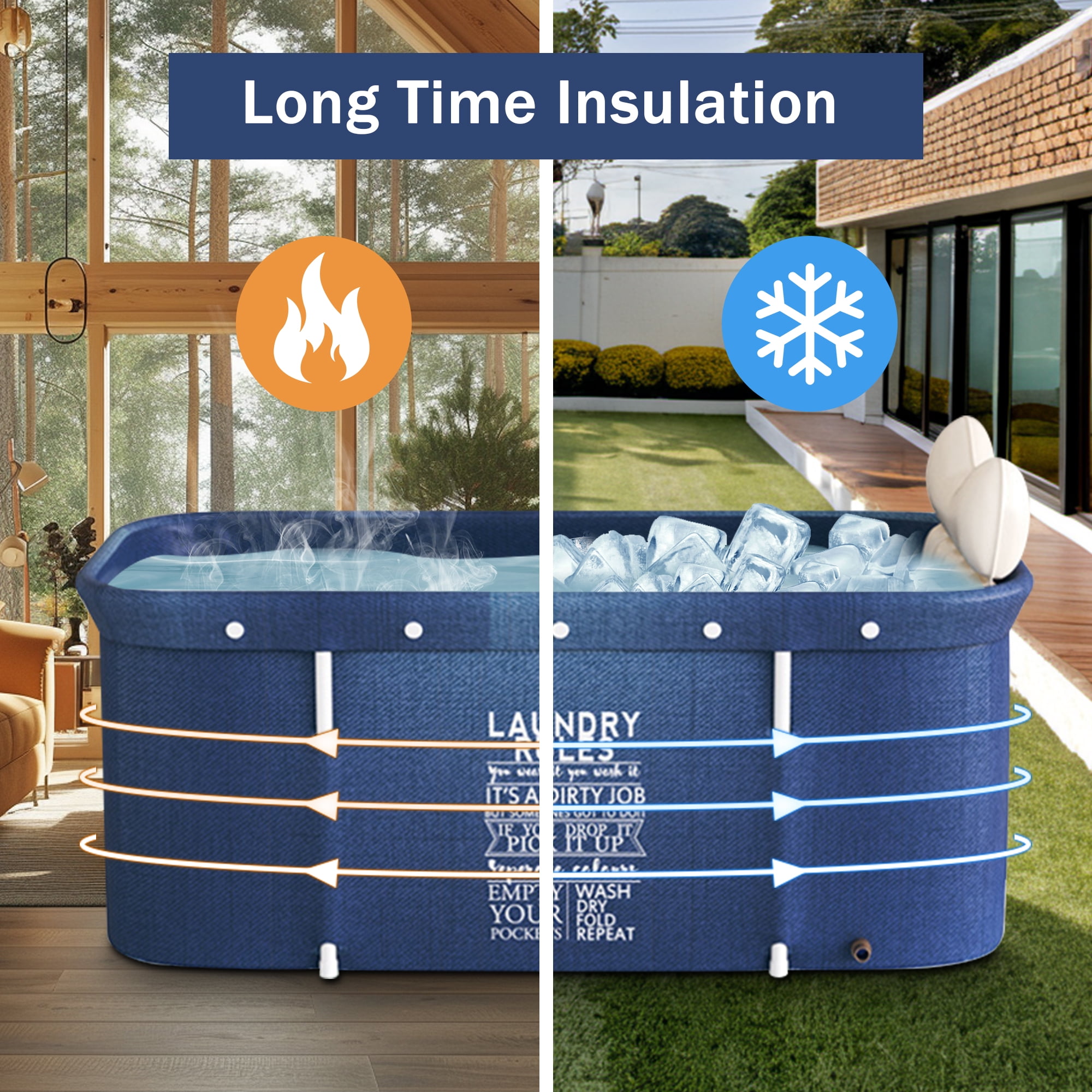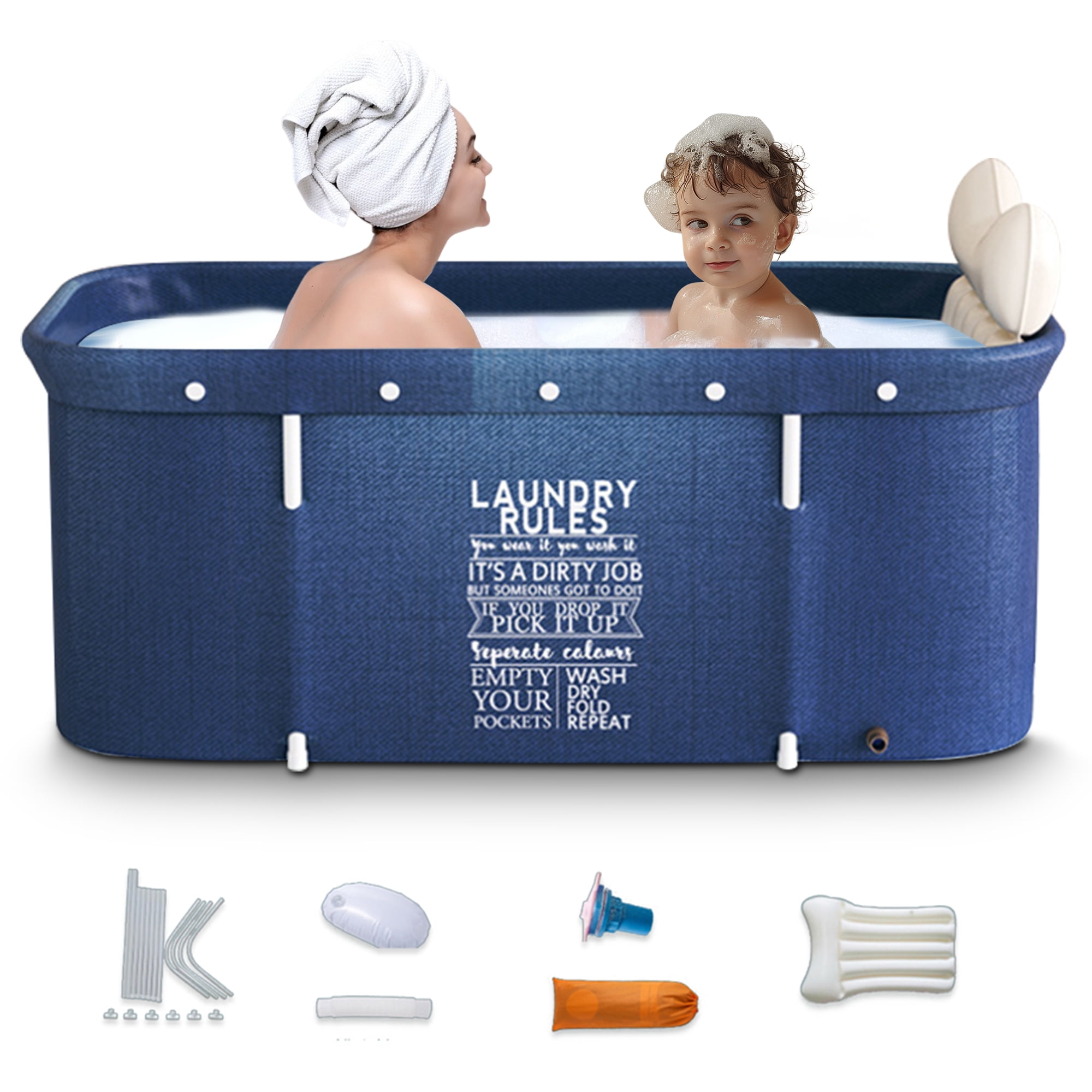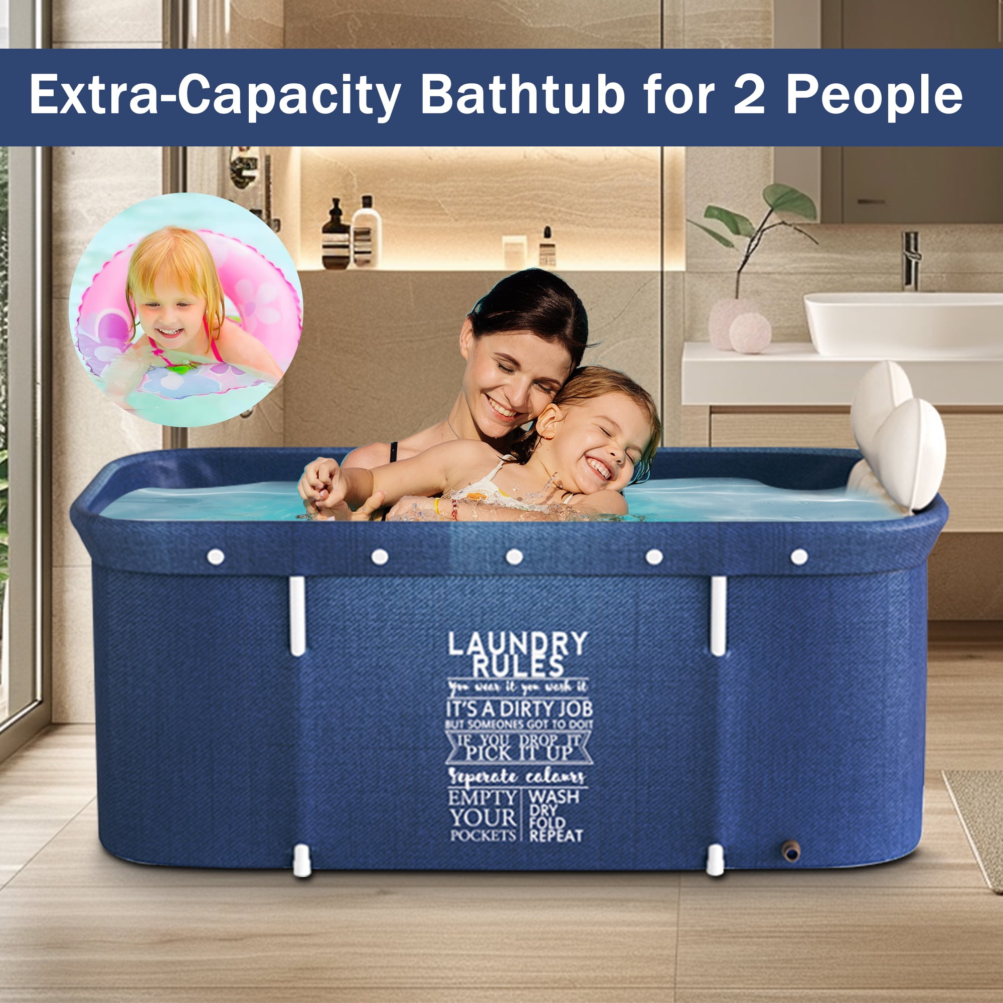 47″Folding Bathtub for 2 People,Large Soaking Bath Tub for Hot Cold Bath,Efficiently Maintaining,Blue