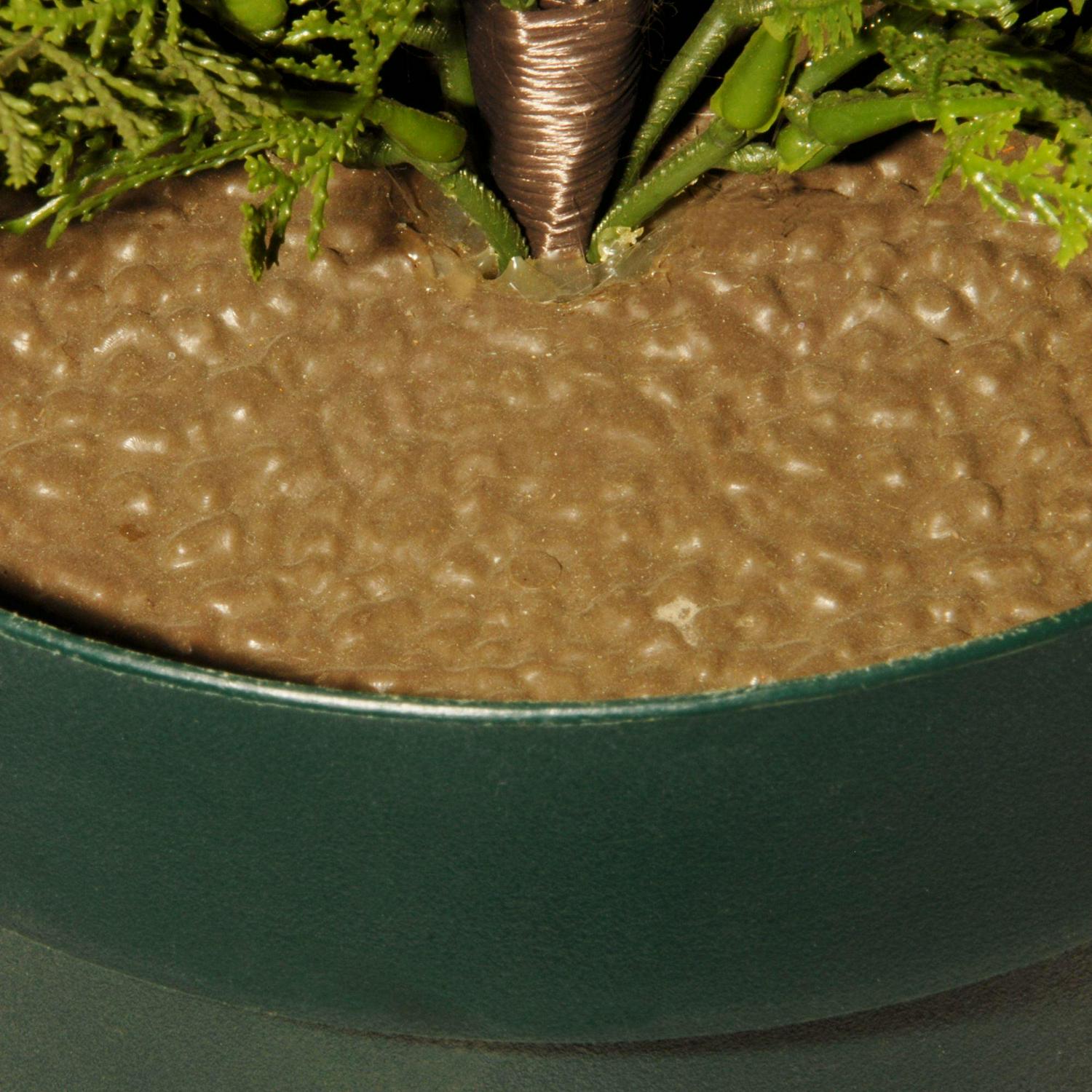 Popular with landscapers, an Arborvitae tree is always a welcome topiary for display around the home. This realistic yet artificial topiary in round growers pot is maintenance-free, no need for water, soil or sun. It will add a touch of greenery to porch, patio or entranceways.