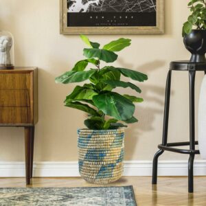 Upgrade your home interior with this 48 Inch Artificial Deluxe Fig Bush in Blue and Cream Basket. First, the Fig was anointed plant of the new millennia. Now, the latest, greatest adaptation of our fabulous Fig in its newest splendor assures its spot as plant of the century. And there are options galore in our family of 48-inch-tall faux Fig arrangements. At four feet high, this Deluxe Fig Bush features thick beautifully veined large green leaves. Furthermore, our design team has married this tall marvel with a 15-inch-high cylindrical blue and cream basket. Other highlights include the no-fade colors and no need for more than an occasional dusting. This plant will look delightful anywhere in your home or office.