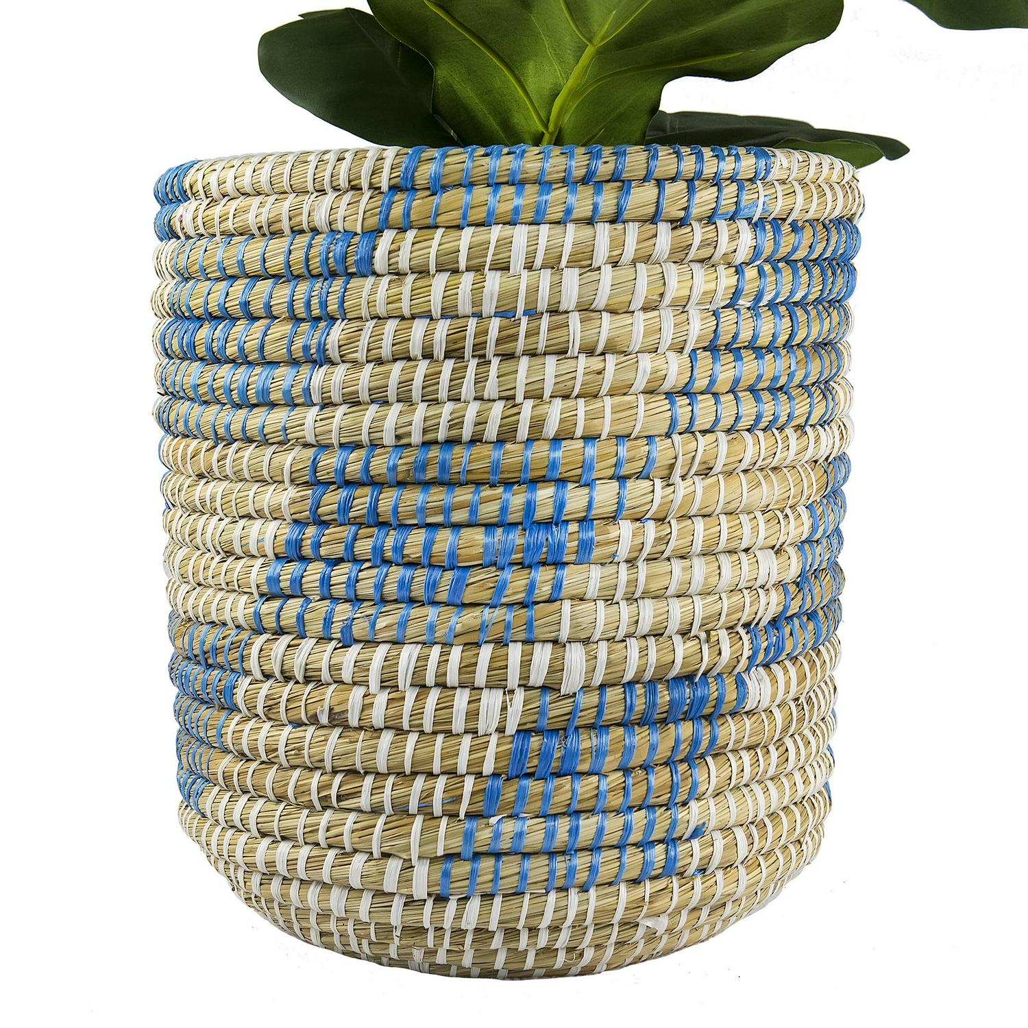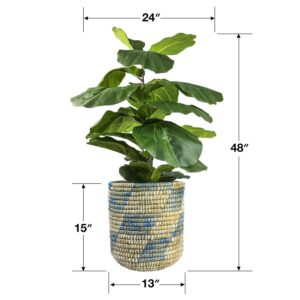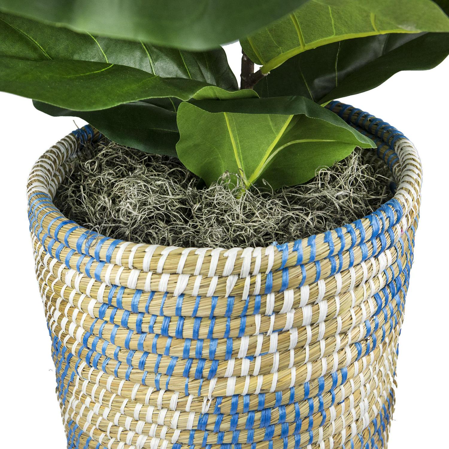 48 Inch Artificial Deluxe Fig Bush in Blue and Cream Basket