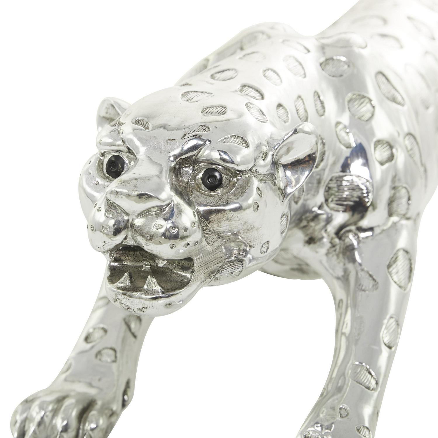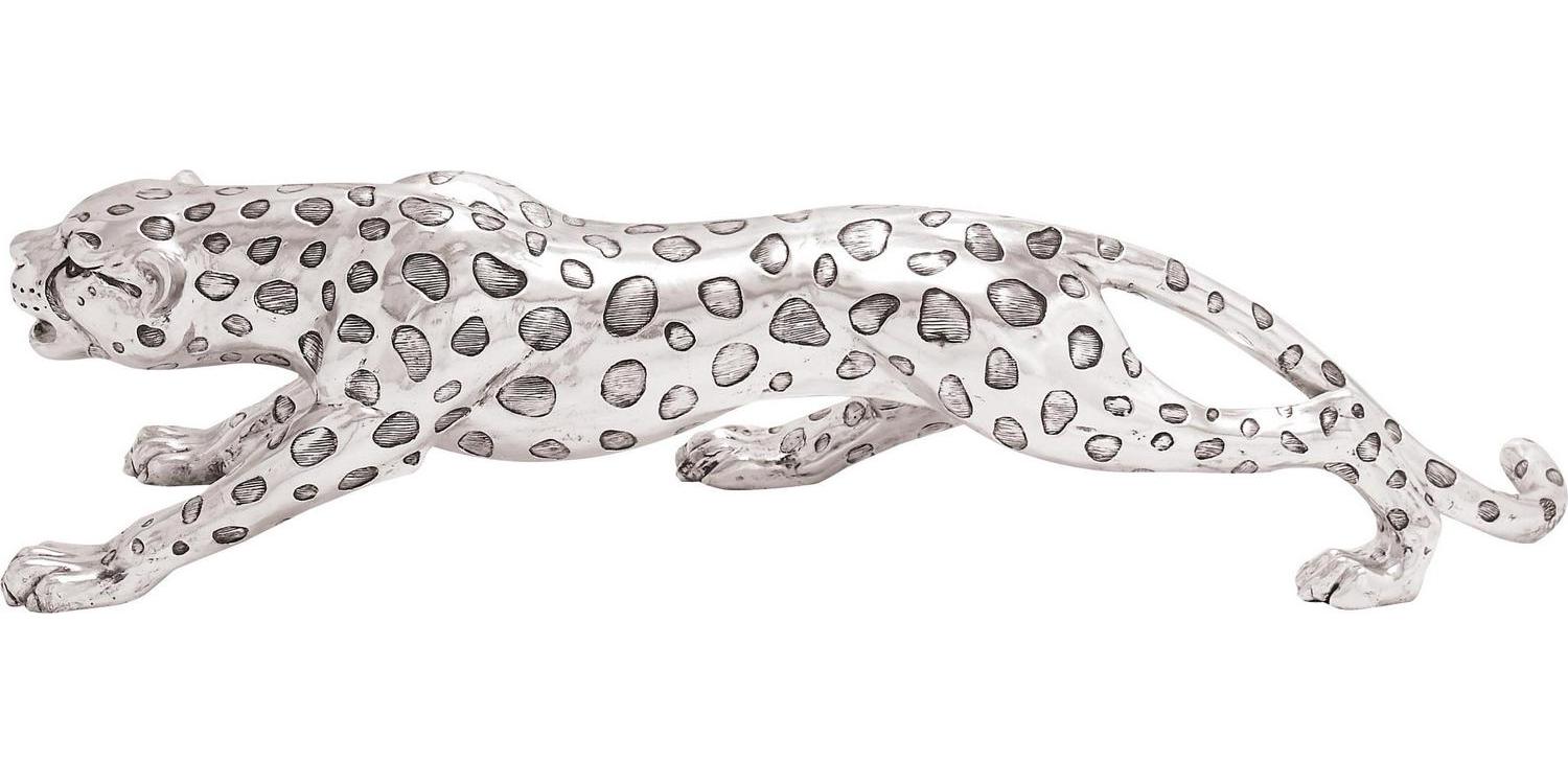 48 x 12 Silver Polystone Leopard Sculpture, by DecMode