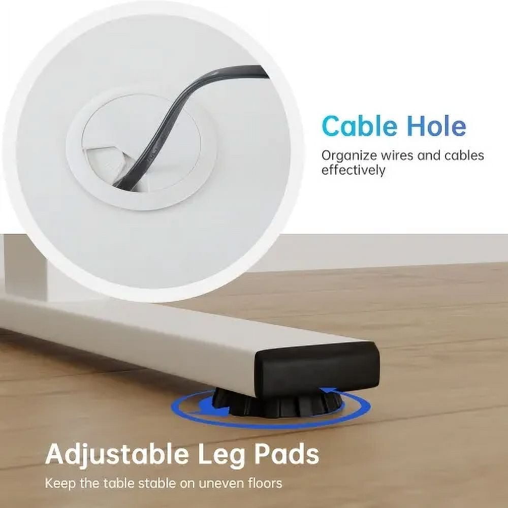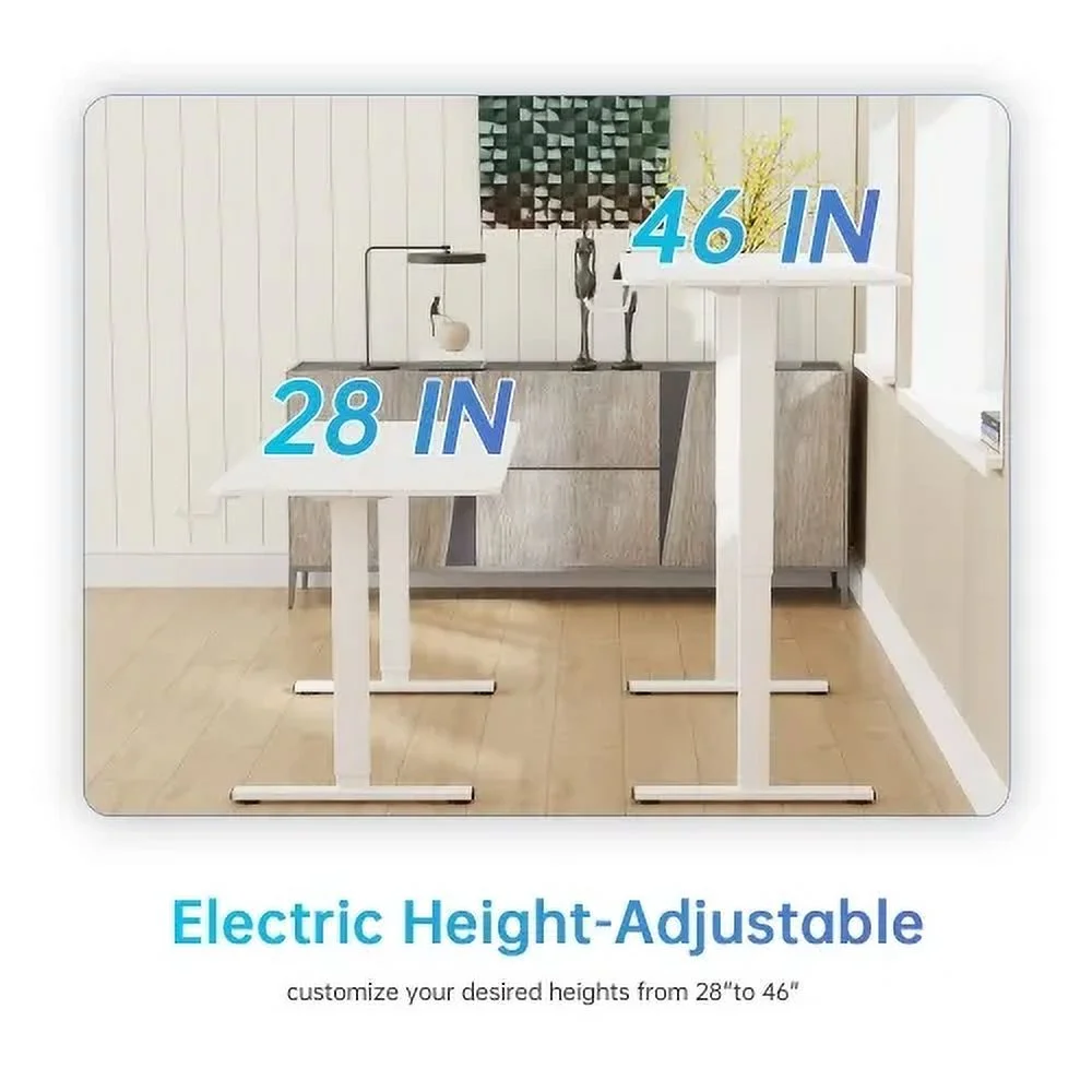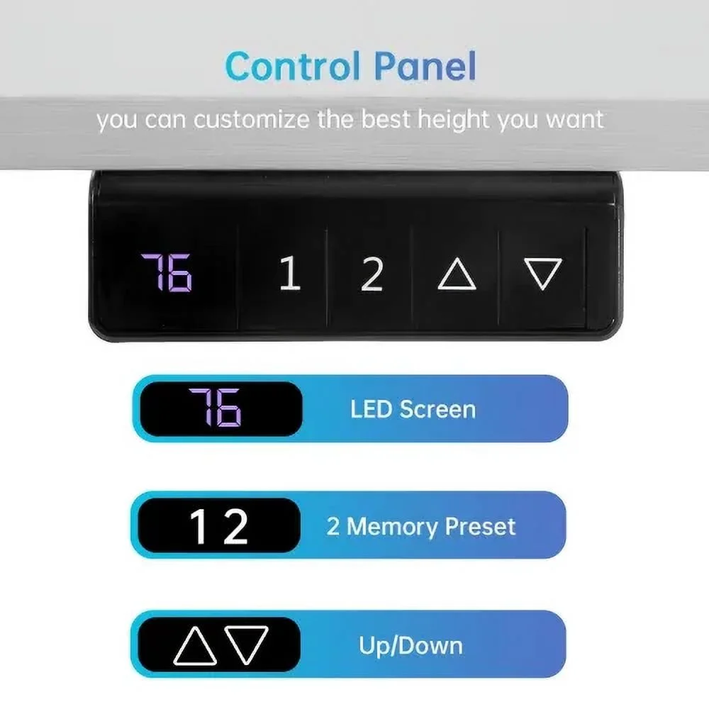 👍【COMFORTABLE SPACE】Our electric sit-stand desk adopts environmentally friendly material desktop. This standing desk also features a spacious surface with a maximum desktop size of 48 x 24 inches, providing ample space for your computer, files, and other work essentials. Built-in headphone holder helps keep your workspace organized, and the height-adjustable desk has a stylish design 👍【LED control panel】 ergonomic desk LED display and smart keyboard provide easy-to-use controls for adjusting the height of your computer desk. These desks use the up/down keys for smooth manual adjustments, or select the 1/2 keys for the easiest way to quickly switch between saved memory locations.sit stand desk 👍【Sturdy and Durable】The electric adjustable table has a sturdy solid steel frame. The standing desk combines an industrial-grade steel frame with a sturdy desktop that can hold up to 154 pounds to support your ideal workspace setup. The wide T-shaped foot design allows the adjustable height table to maintain good stability when used at its highest height.height adjustable desk 👍【Easy to Assemble】The electric standing desk comes with detailed installation manual, accurate installation video guide, recessed screw hole locations, if you have any questions, please send us an email for faster and more effective help. standing desk, adjustable home desk, home office desk, adjustable office desk, electric standing computer desk, height adjustable standing desk 👍【After-Sales Service】This standing desk attaches great importance to customer satisfaction and provides excellent after-sales service to resolve any concerns or technical issues that may arise after purchasing the computer desk. A dedicated team is on hand to provide you with prompt assistance, ensuring a seamless ownership experience. adjustable height desk, electric adjustable height desk