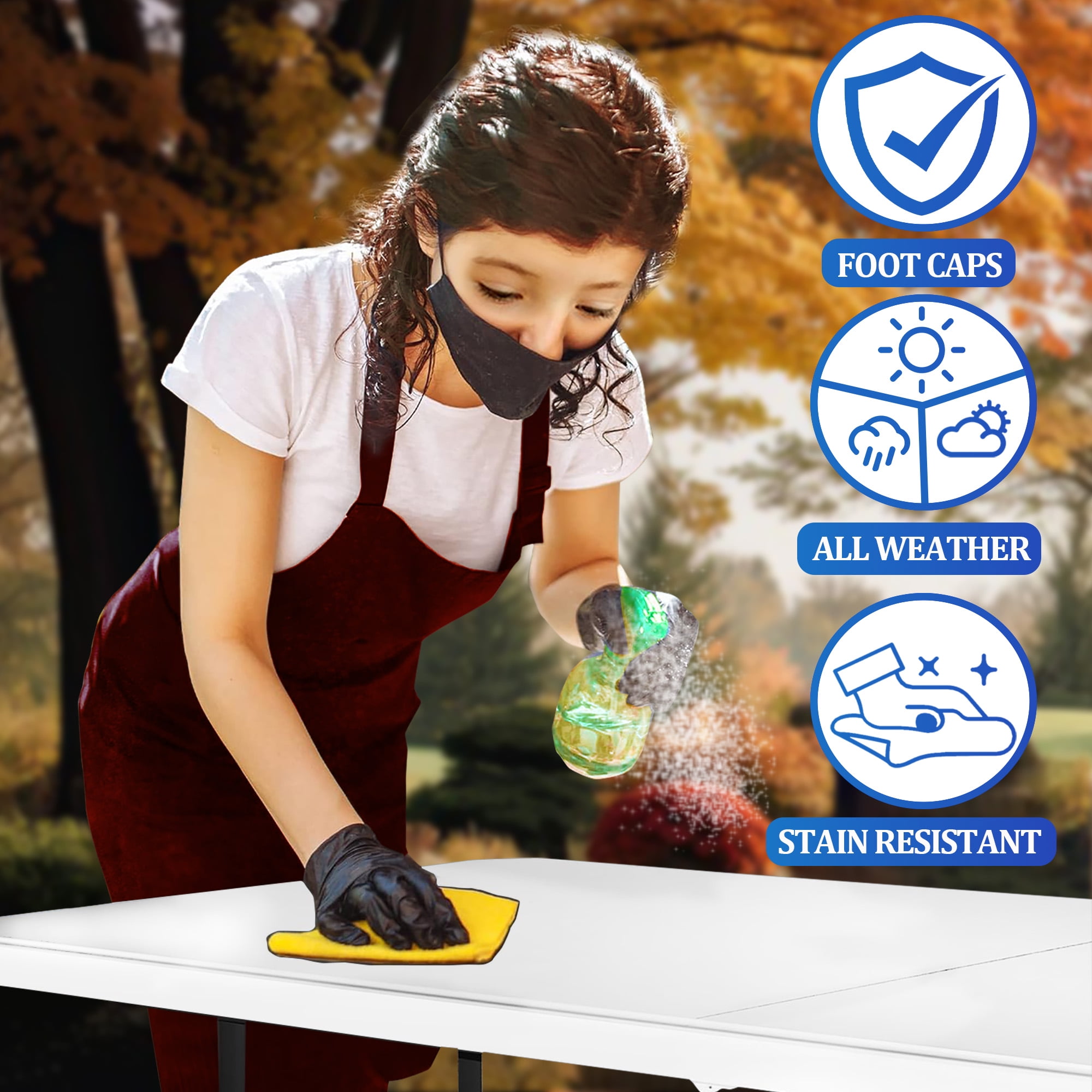 UNRIVALED DURABILITY – Our 4-foot folding table boasts a robust 330 lbs weight capacity and a weather-resistant build, ensuring longevity for both indoor and outdoor activities. Crafted to withstand the elements and provide unbeatable sturdiness. INSTANT SETUP, TIME SAVER – Skip the hassle! Arrives fully assembled, ready for immediate use. No time wasted on assembly, just unfold and enjoy. Effortless setup makes it a go-to choice for any event, from impromptu picnics to planned parties. VERSATILE CHARM – Elevate your gatherings with this versatile folding table. Ideal for picnics, parties, camping, and more. Its sleek black design not only serves function but adds a touch of sophistication to any setting. A must-have for every occasion. COMPACT YET EXPANSIVE – Effortlessly foldable for compact storage. Weighing a mere 19.4 pounds, this lightweight table is easily maneuverable by anyone. A space-saving solution without sacrificing size – perfect for small spaces or on-the-go activities. ROCK-SOLID STABILITY – Precision-engineered legs with an arced tube design eliminate wobbling, providing unmatched stability. Premium HDPE top and solid steel legs ensure a waterproof, scratch-resistant surface capable of withstanding up to 330 lbs. A perfect blend of style, strength, and convenience.