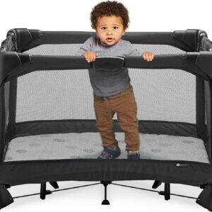 4moms Breeze Plus Portable Playard with Removable Bassinet and Baby Changing Station, Easy One-Handed Setup