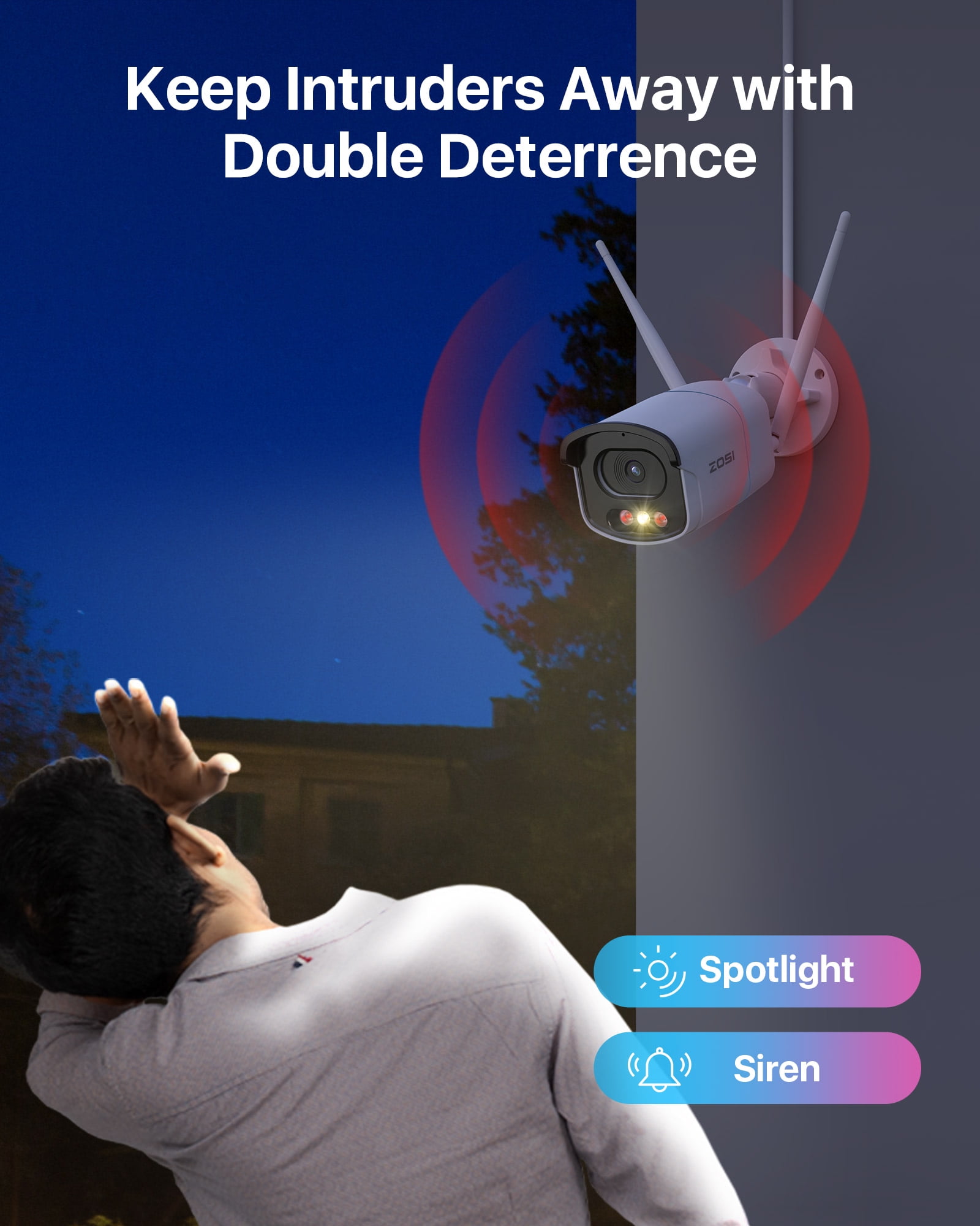 Crystal Clear 4 MP Resolution: The ZOSI wireless security camera system offers an impressive 4 MP resolution for high-quality video recordings. Advanced 3D-DNR technology minimizes noise, ensuring smooth video playback Adaptive Lighting: The ZOSI security camera is equipped with built-in warm light and infrared light, allowing you to customize the lighting based on your specific needs Full-Color Night Vision: Enjoy exceptional night vision with a 66 ft range and a 90° viewing angle. You’ll get clear, full-color images even in the darkest conditions Enhanced Security: This ZOSI wireless security camera offers smart light and sound alarms that respond to potential threats. It’s triggered by human motion events or can be manually controlled to deter intruders Instant Notifications: Receive instant smart notifications with snapshots directly to your smartphone via the Zosi app Stay Connected Anywhere: Access live views and playback remotely from your smartphone or PC using the free ZOSI Smart app Reduced False Alerts: Customize the detection area to significantly reduce false alarms, ensuring accurate alerts for genuine security concerns IP66 Weatherproof: The cameras are housed in IP66 waterproof cases, making them suitable for both indoor and outdoor use Enhanced Efficiency: H.265+ technology reduces bandwidth and storage by over 50% 24/7 Recording: This system comes with a pre-installed 2 TB hard drive, ensuring continuous recording 24 hours a day Human Detection: The ZOSI Wi-Fi security camera is equipped with advanced AI-based human detection. It alerts you to real threats by recognizing and notifying you of the presence of people Two-Way Audio: Communicate in real-time using two-way audio. Easily respond to guests or deter unwanted individuals from anywhere with this convenient feature