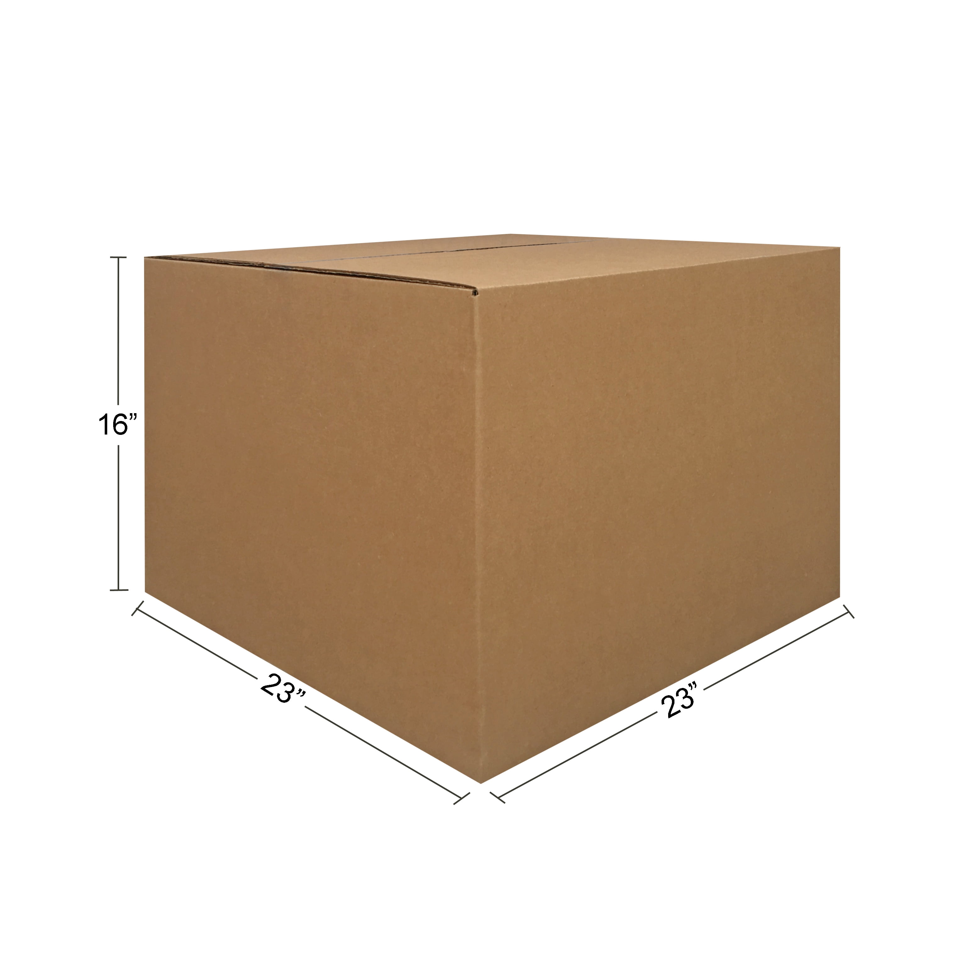 5 Extra Large Moving Boxes 23″ x 23″ x16″ for packing linens, bedding, and larger lighter weight items 4.9 Cubic feet of packing space that makes packing items less strenuous and spacious Single Wall 32 ECT XL corrugated moving box with 200lb test that saves space in moving trucks Pack lighter weight items in bigger boxes to save on shipping cost and space Place several pieces of tape at the seams overlapping each other to accurately seal the box
