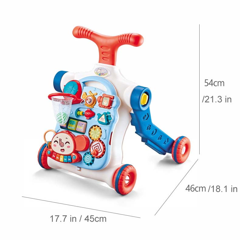 [5 in 1 Design]: This multi-functional sit-to-stand learning walker has 5 modes: baby walker mode,motorbike mode,baby activity table mode,scooter mode,and toddler push car mode. Our baby play walkers are not only educational but also recreational, various intelligent game for kids to entertain meanwhile promote brain development. Excellent baby walking toys for 1 year old toddler! [Safe for Kids]: Our push walker toy for babies is made of high-quality durable materials and were 100% safe and non-toxic,thicken ABS plastic,the smooth & round edge and non-slip handle design can protect your baby’s small hands. The stable triangular supportive structure and superior material make push toys for toddlers 1-3 more stable and avoid rollover 【Smooth Wheels】Built with universal wheels for smooth sliding in all directions. 【Ideal Gifts】This sit-to-stand walker is the best gift choice for Christmas,Birthday,Children’s Day.
