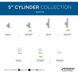 5″ up/down cylinder/outdoor lantern in White. with heavy duty aluminum construction and die cast wall bracket. Powder coated finish. Wet location listed when used with P860045 top cover lens.