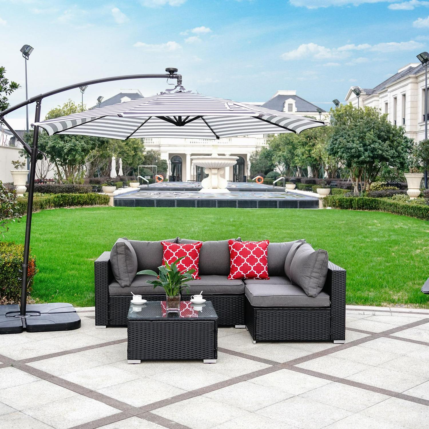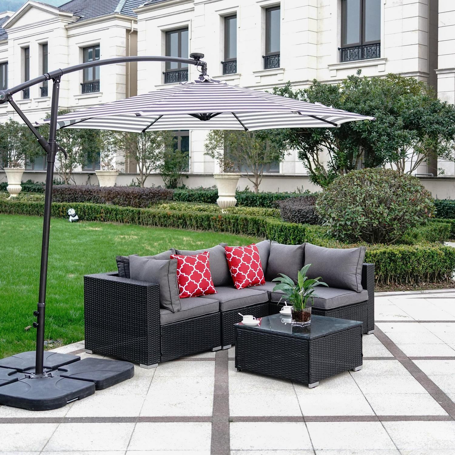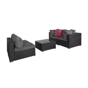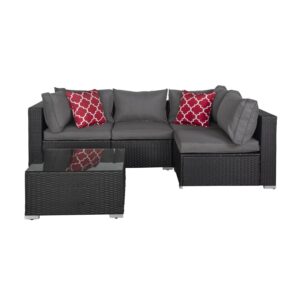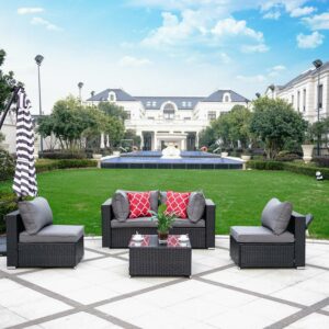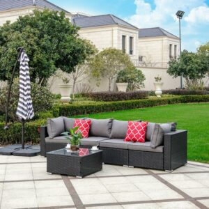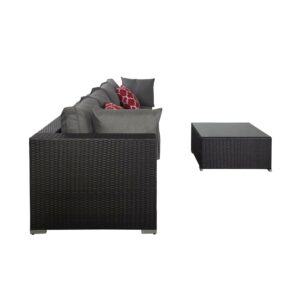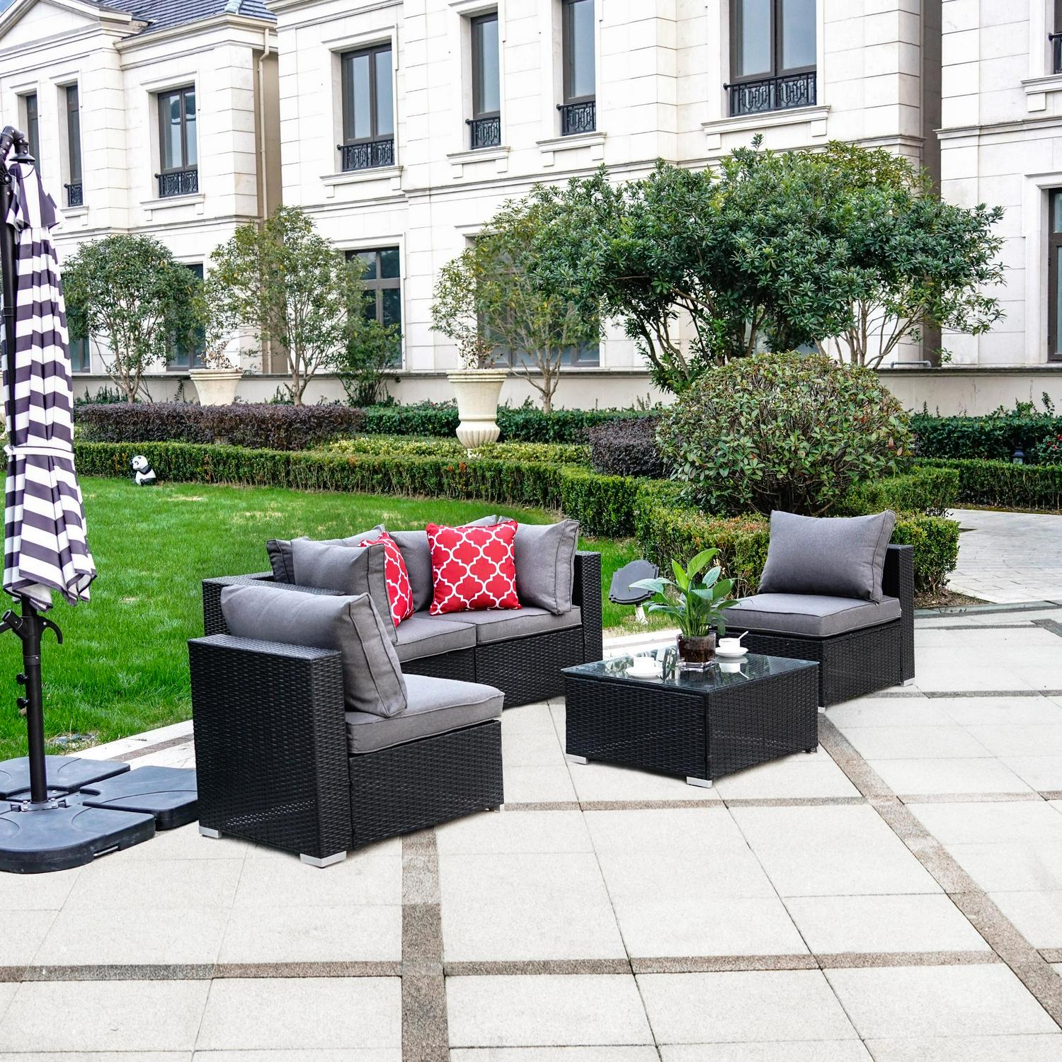5-Piece Outdoor Patio Rattan Wicker Sofa Conversation Set with Coffee Table and Cushions, Espresso/Gray