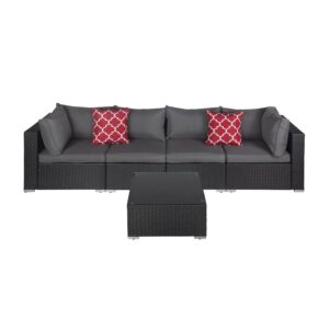 Enjoy hanging out with your guest in this modular outdoor patio conversation set. Arrange it anyway you like and design your lounge area the way you like. Made with durable steel frame and all weather resistant rattan wicker. Sit in comfort in the plush seat cushions and back pillows.