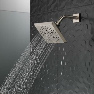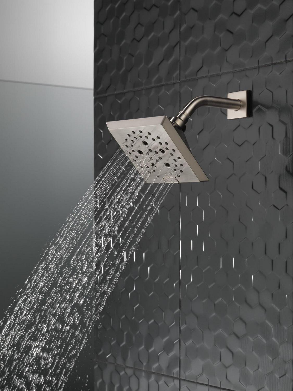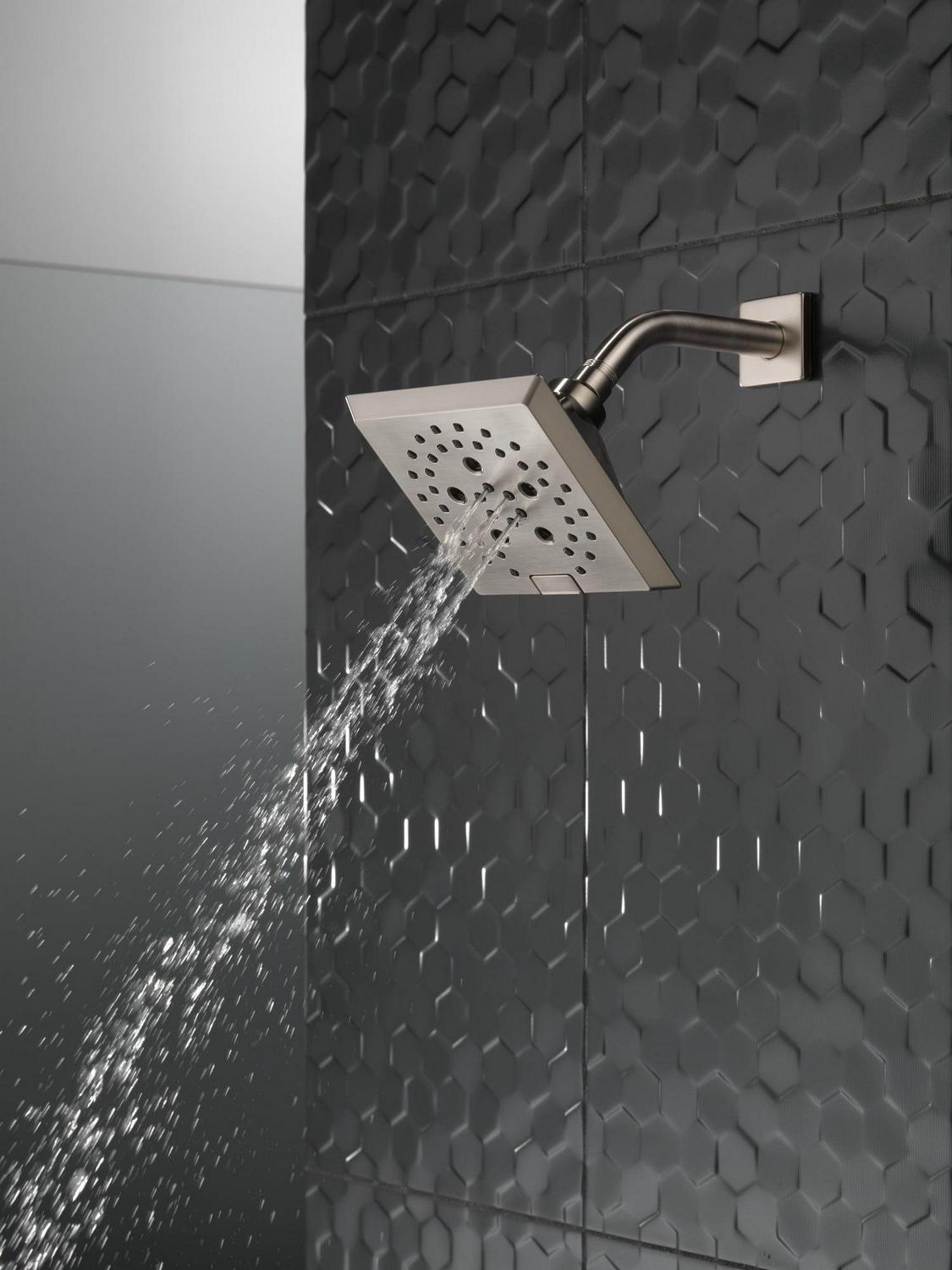 Deltaà H2Okineticà PowerDrenchà Showers look different because they are different. H2Okineticà showers are powered by an innovative technology that sculpts the water into a unique wave pattern, giving you the feeling of more water without using more water and creating a shower with more warmth, coverage and intensity. So go ahead and indulge, because now you can enjoy the feeling of more water without using more water. Replacing your shower head is one of the quickest, simplest upgrades you can make to your shower. Our shower heads feature a wide range of styles and innovations, and install in less than 20 minutes – no special tools required. While other products may gather unsightly mineral build-up over time, Delta soft rubber Touch-Cleanà spray holes allow any mineral residue to simply be wiped away for an instantly refreshed look with no need for soaking or the aid of chemical cleaners. The pause setting gives you ample space for shaving, lathering and other shower tasks, then easily restarts the water with the temperature where you left off. This spray setting helps you conserve water, so you can worry less about depleting your supply of hot water – and you help the environment too. Delta WaterSenseà labeled faucets, showers and toilets use at least 20% less water than the industry standard saving you money without compromising performance.