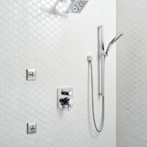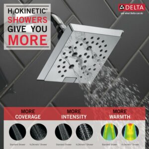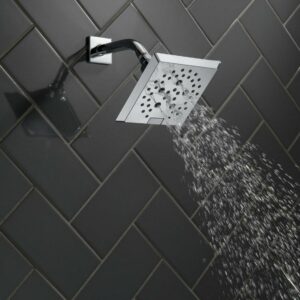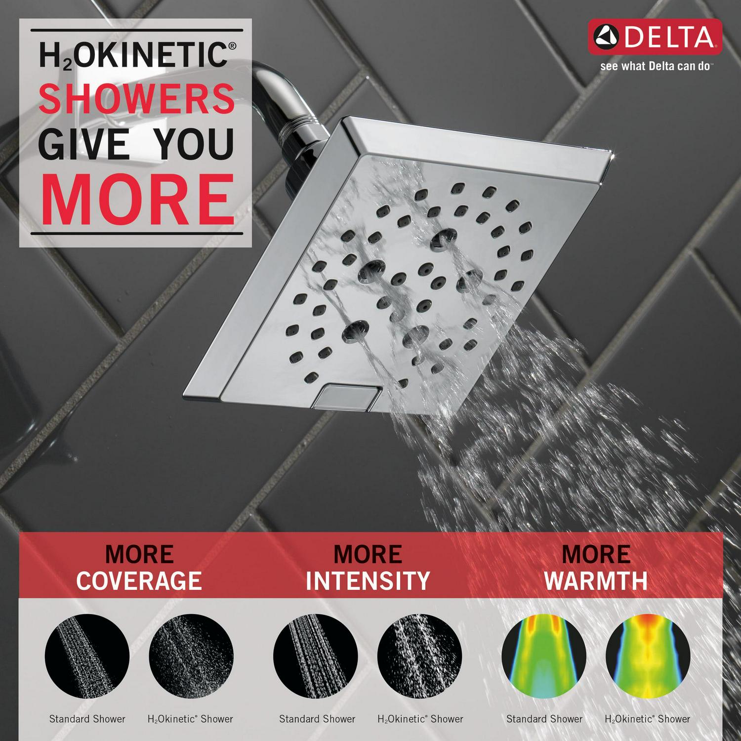 Delta H2Okinetic PowerDrench Showers look different because they are different. H2Okinetic showers are powered by an innovative technology that sculpts the water into a unique wave pattern, giving you the feeling of more water without using more water and creating a shower with more warmth, coverage and intensity. So go ahead and indulge, because now you can enjoy the feeling of more water without using more water. Replacing your shower head is one of the quickest, simplest upgrades you can make to your shower. Our shower heads feature a wide range of styles and innovations, and install in less than 20 minutes – no special tools required. While other products may gather unsightly mineral build-up over time, Delta soft rubber Touch-Clean spray holes allow any mineral residue to simply be wiped away for an instantly refreshed look with no need for soaking or the aid of chemical cleaners. The pause setting gives you ample space for shaving, lathering and other shower tasks, then easily restarts the water with the temperature where you left off. This spray setting helps you conserve water, so you can worry less about depleting your supply of hot water – and you help the environment too. Delta WaterSense labeled faucets, showers and toilets use at least 20% less water than the industry standard saving you money without compromising performance.
