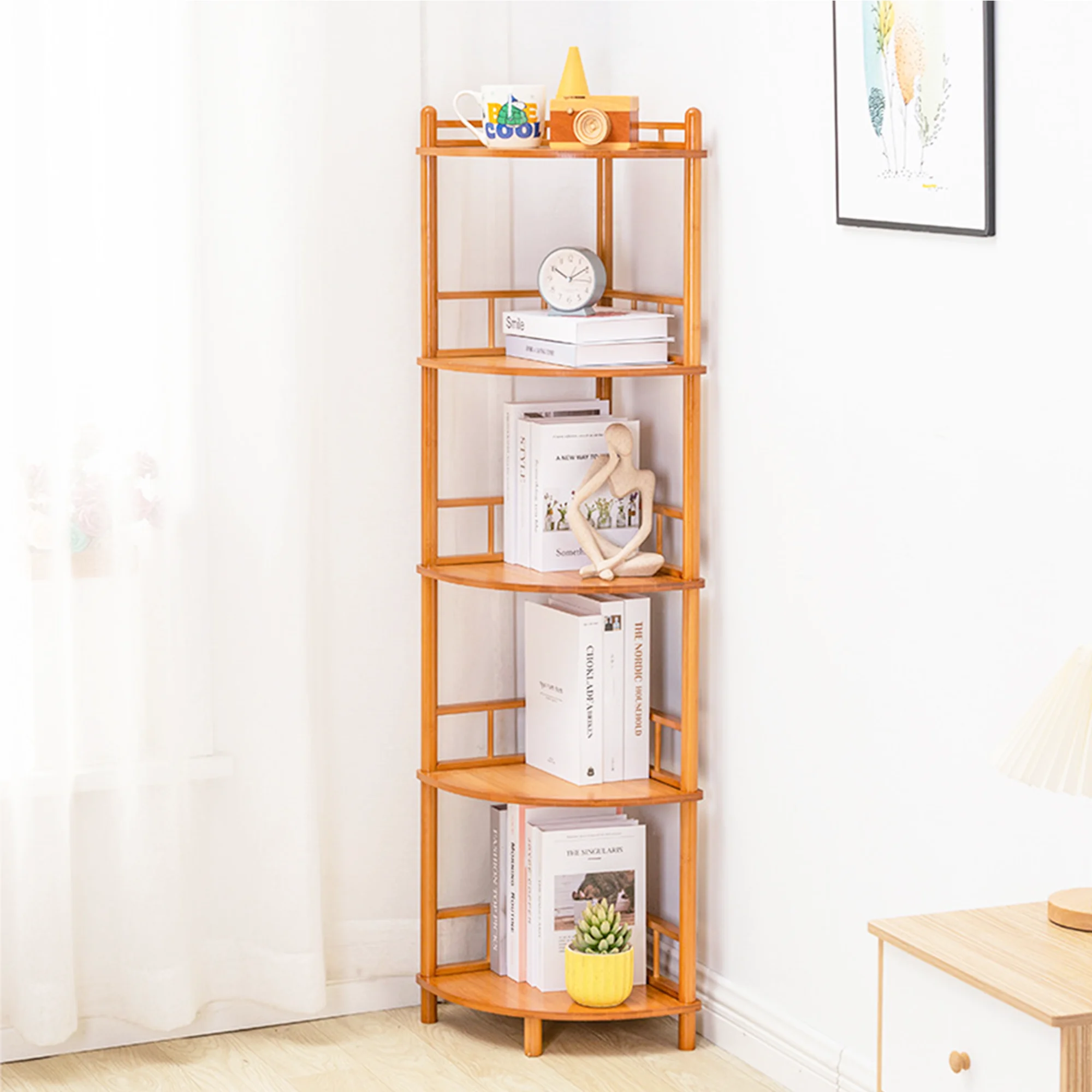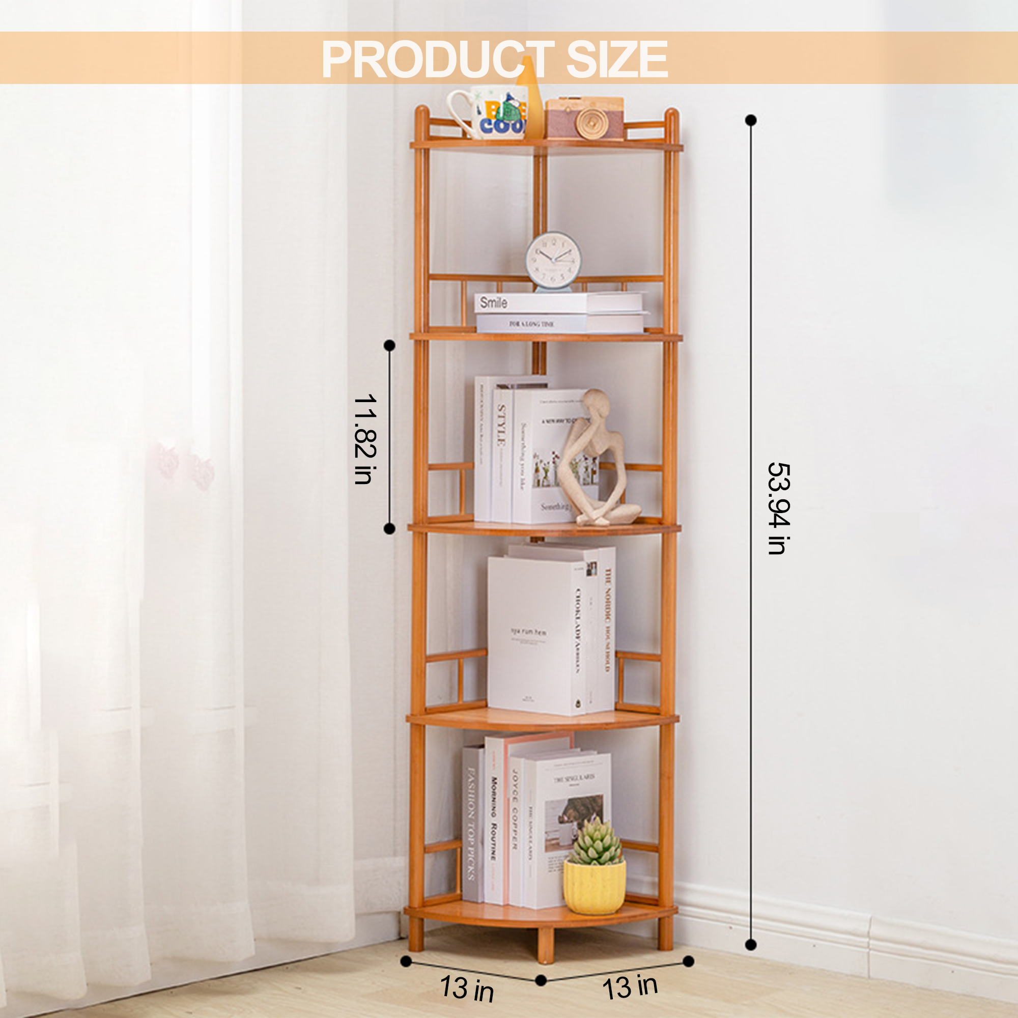 5-Tier Corner Shelf, Wooden Corner Bookshelf, Display Shelf, for Living Room, Home Office, Tall Corner Shelf, Indoor Plant Stands Outdoor, Small Space, with Guardrail