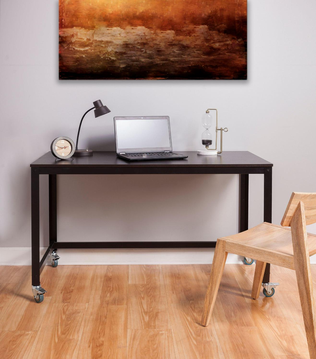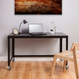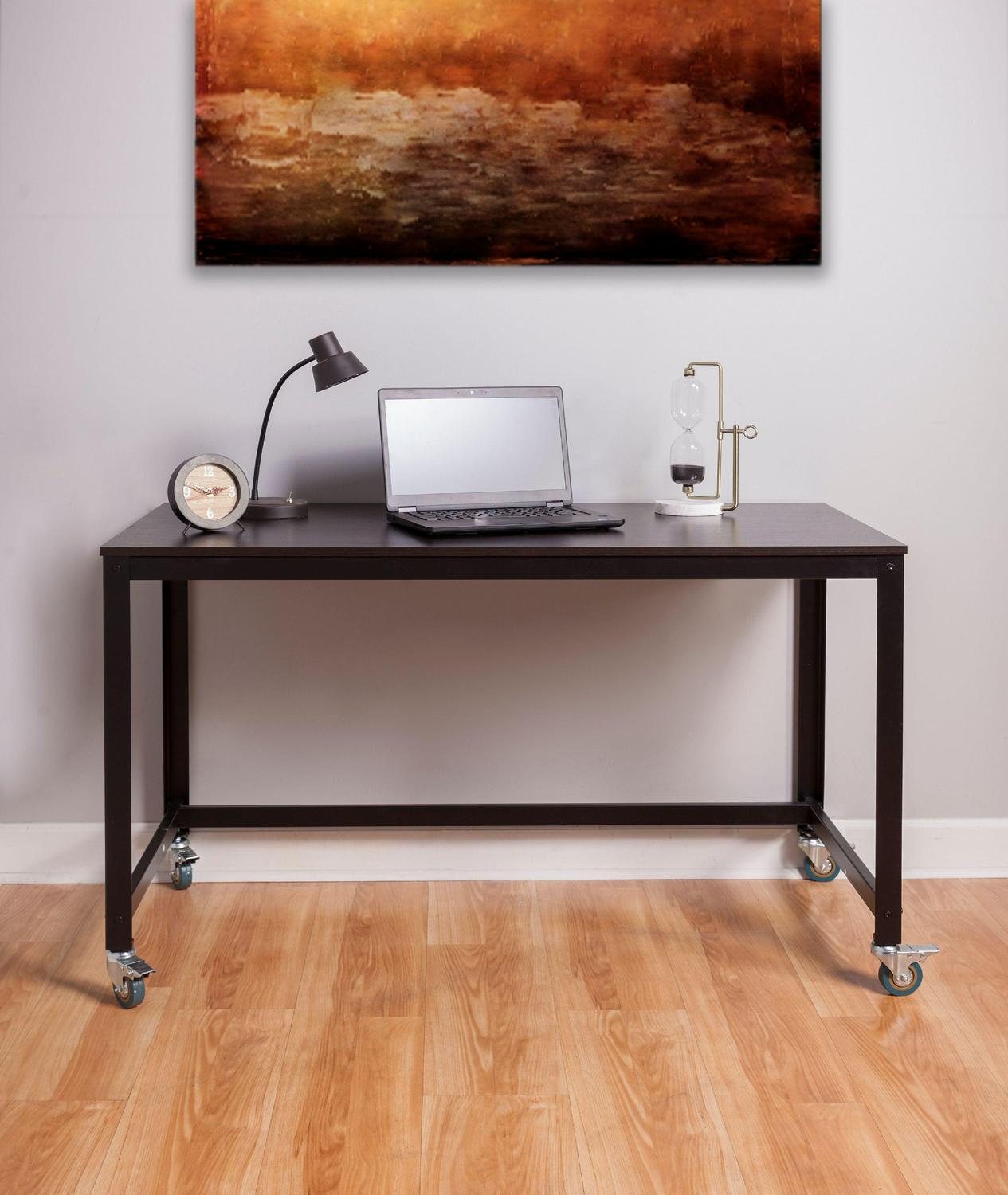 The OneSpace 50-JN16DSK Loft Writing Desk is a multipurpose, multifunction desk designed for studio apartments or any tight space need. No matter where it goes, its 4 smooth rolling casters easily lock firmly into place and unlock just as easily. Its attractive espresso brown wood surface desktop boasts a weight capacity of 150 pounds with full stability. The desk’s durable black steel frame further enhances stability and support. And its size and shape allow you to easily store it out of the way when needed. This multifunction working desk can also serve as an extra table for whatever you need. *Compatible Companion Shelf Item No. 50-JN16SHLF, SOLD Separately* Perfect for small spaces, with a small price and big value. Offered by OneSpace, part of the Comfort Products family. With a history dating back to 1919, Comfort Products specializes in affordable products for better living.