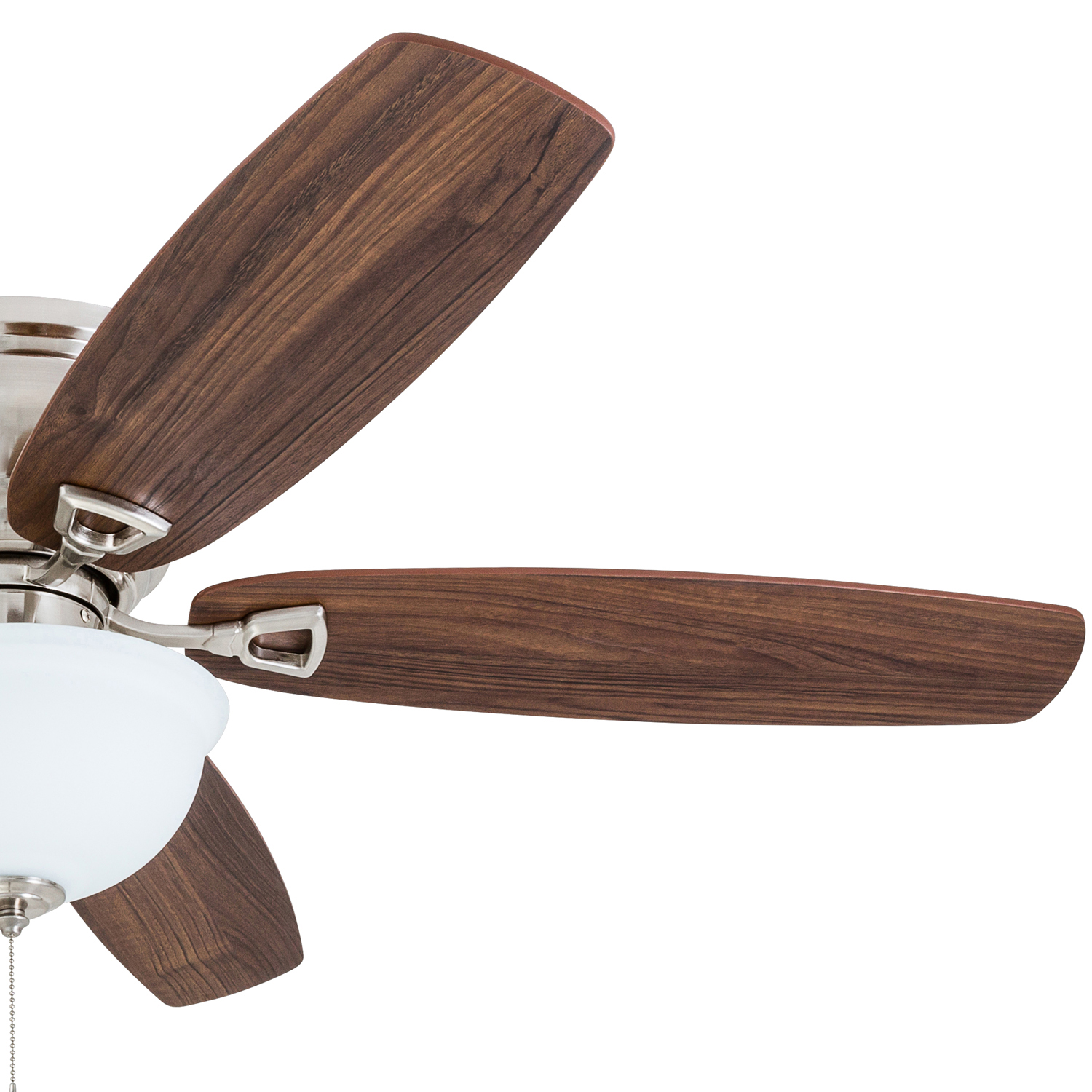HIGH AIR-FLOW: Enjoy the cool breeze created by a ceiling fan! Three speeds allow for the perfect setting for your space. QUIET, REVERSIBLE MOTOR: Conveniently quiet, reversible motor. Can be run in the winter to aid in rotating warm air and cutting down on energy costs. MEDIUM SIZED ROOMS: Perfect for rooms around 350 square feet such as living rooms, bedrooms, dining rooms or family rooms. TWO-BLADE FINISHES: Get the perfect finish match with our reversible ceiling fan blades. Each side has a unique finish to compliment your space. 100% SATISFACTION GUARANTEED: Limited manufacturer’s warranty. You’ll love this ceiling fan!