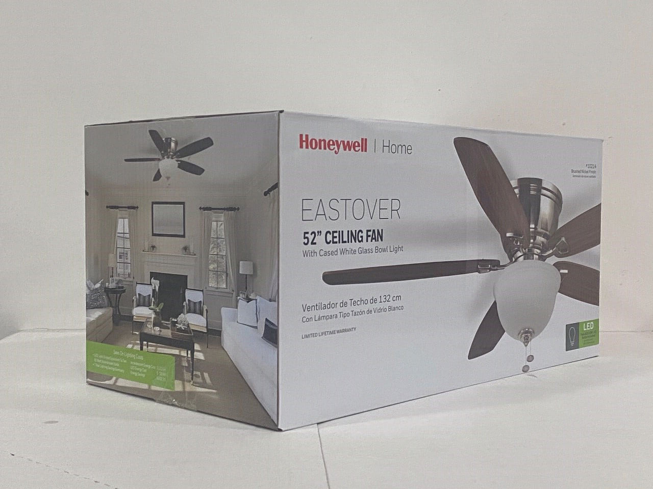 52″ Honeywell Eastover Ceiling Fan, Hugger, Satin Nickel