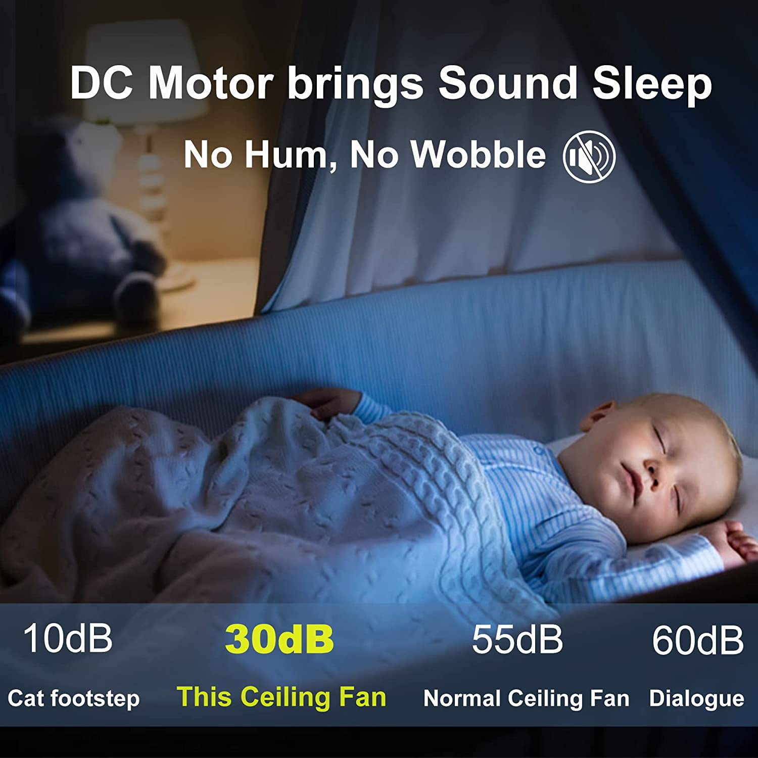 Product Description —Easy to Install 52” Western Modern Smart Ceiling Fan. Balanced and Silent: 52” quiet dc ceiling fan with light is well balanced, silent, no disturbing humming and wobble. 4 Ways to Control:Smart black ceiling fan with light and remote control works with Alexa, Google, App. Easy to Install: Easy to assemble and install low profile ceiling fan, just follow the manual and instruction. Durable Material: Modern contemporary black ceiling fan with 3 blades and strong and durable materials, add beauty for modern rooms and outdoor patios, porches. —6-speeds, Quiet, Reversible,DC, Energy-efficient Ceiling Fan. Powerful: Speed-1 2643 CFM, Speed-2 3806 CFM, Speed-3 4768 CFM, Speed-4 5639 CFM, Speed-5 6697 CFM, Speed-6 7260 CFM. Indoor and outdoor ceiling fan moves a lot of air. Quiet DC Motor: Ceiling fan with light runs almost silently. It is truly quiet bedroom ceiling fan. Reversible: Lighting&ceiling fan with reversible motor circulates the air in the proper direction all year round. Longer Lifespan: Durable dc ceiling fan is 75% more energy-efficient and normally with 1.5x-2x longer life-circle.