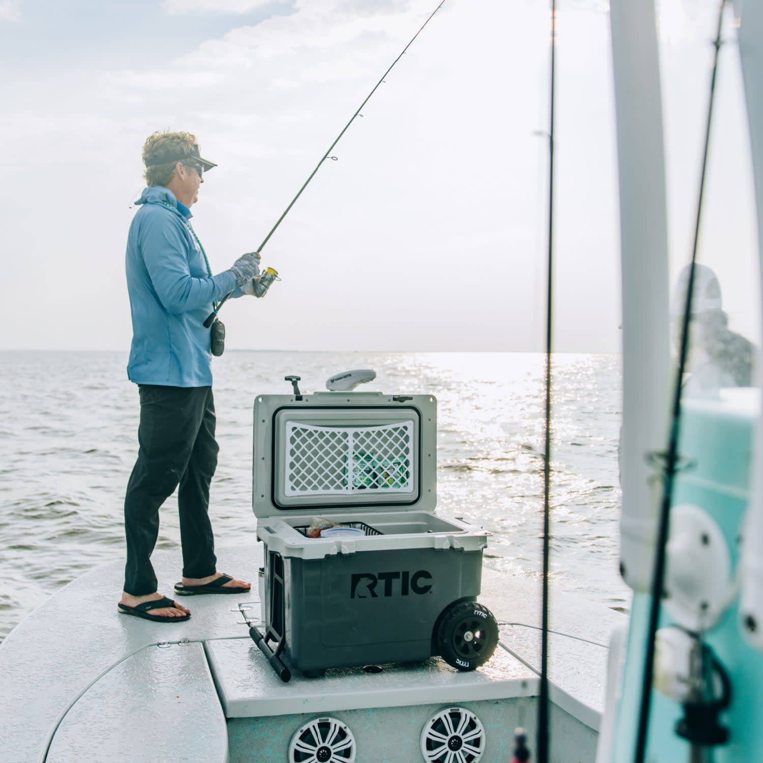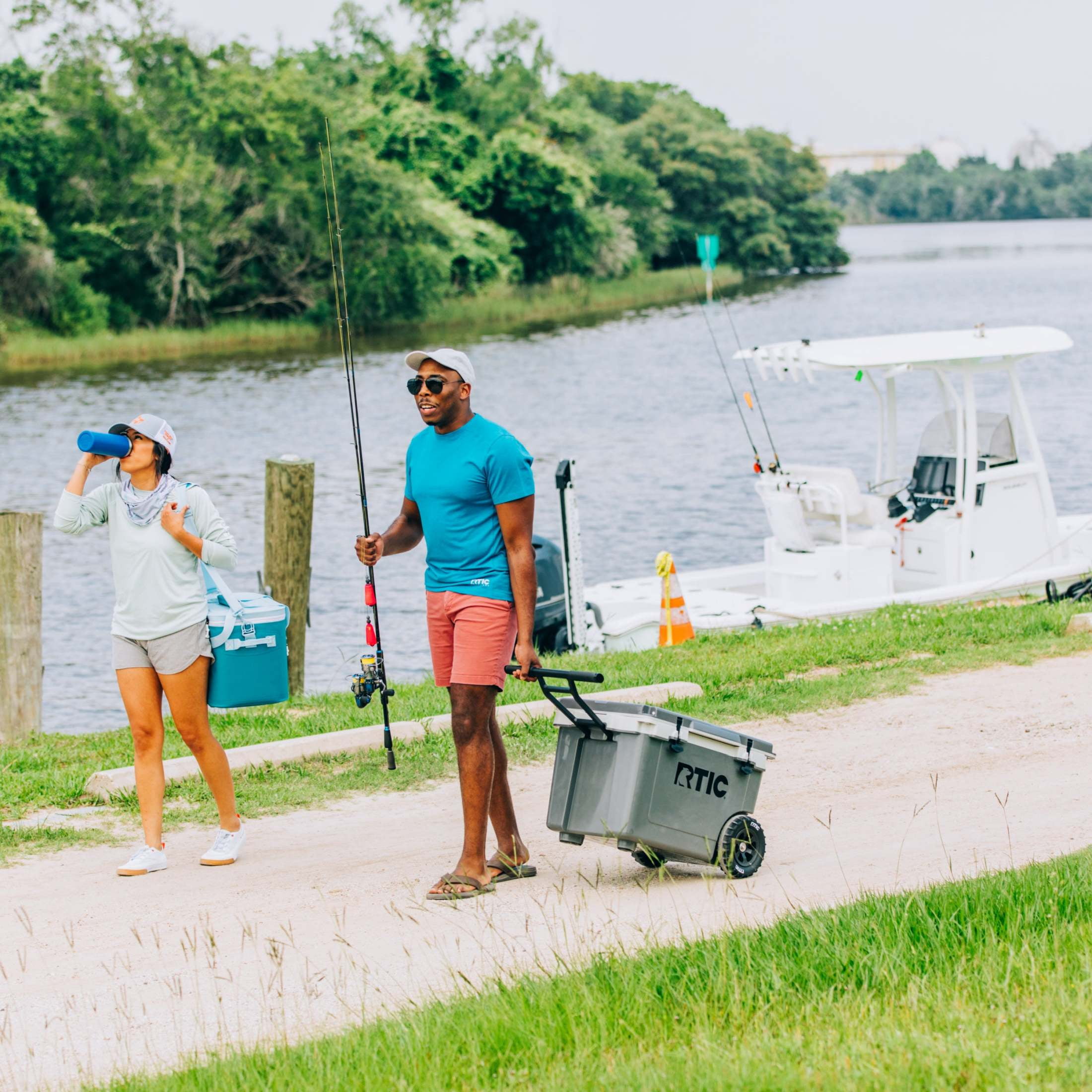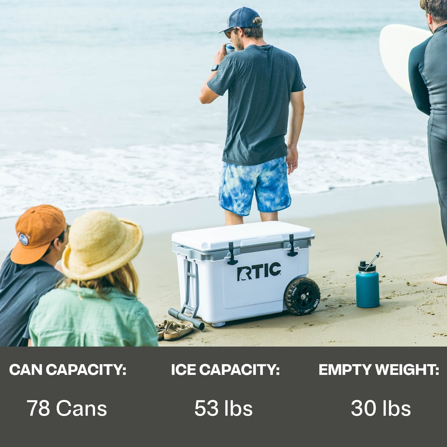 Introducing RTIC’s latest innovation – a new addition to their Ultra-Light series, a rolling cooler on wheels. The 52-quart, 78-can capacity large cooler with wheels is meticulously designed to be over 30% lighter than classic rotomolded coolers of similar capacity, making them the perfect companion for a day trip at the lake, camping, picnic, fishing, the beach, or on a boat. Easily navigate any terrain with the Ultra-Light hard ice chest cooler, with custom-designed tires that are both puncture- and impact-resistant. Experience up to 6 days of ice retention thanks to the cooler’s impressive 2.5” of closed cell foam insulation. The powder-coated aluminum handle boasts non-slip silicone covers for comfortable towing and gently falls into place when not in use.