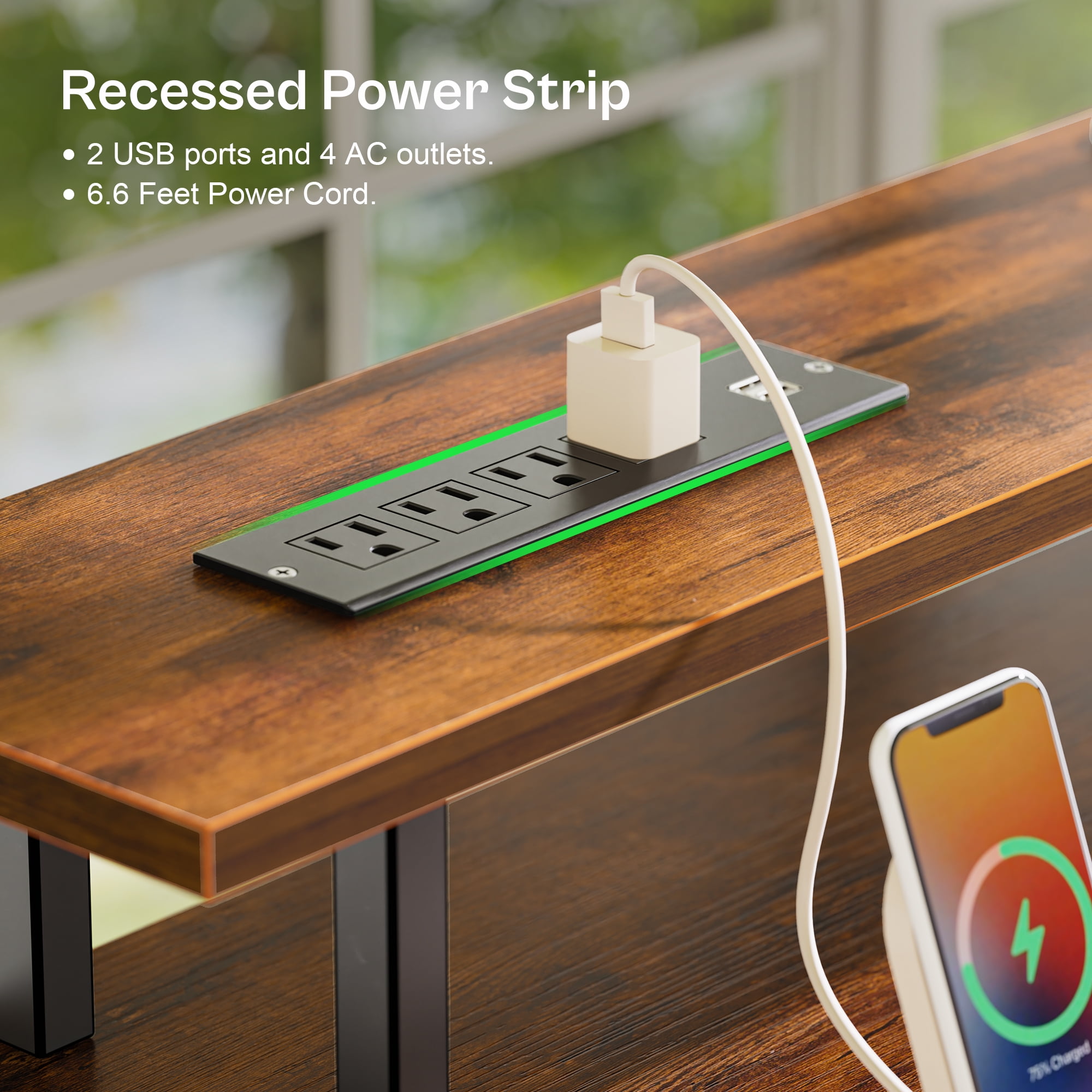 Built-in LED lighting on the home office desk fully upgrading your home office vibes. With 4 fabric drawers, this computer desk with drawers offers ample storage for organizing files, stationery, and various office essentials. Equipped with 4 AC Outlets and 2 USB Ports, reducing the hassle of tangled wires and making it simple to charge your phones, gaming equipment, and other essential office devices. It serves as a versatile desk and can be used as a writing desk or study desk, and of course, as a gaming desk.