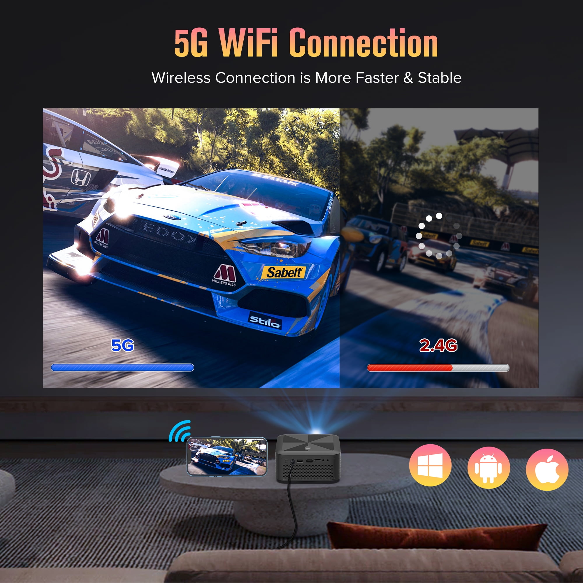 5G WiFi Bluetooth Projector, Portable Full HD 1080P Supported Outdoor Movie Projector, Home Theater Mini Video Projector with Zoom, Compatible with Phone/Tablet/TV Stick/TV Box/DVD Player/ USB/SD