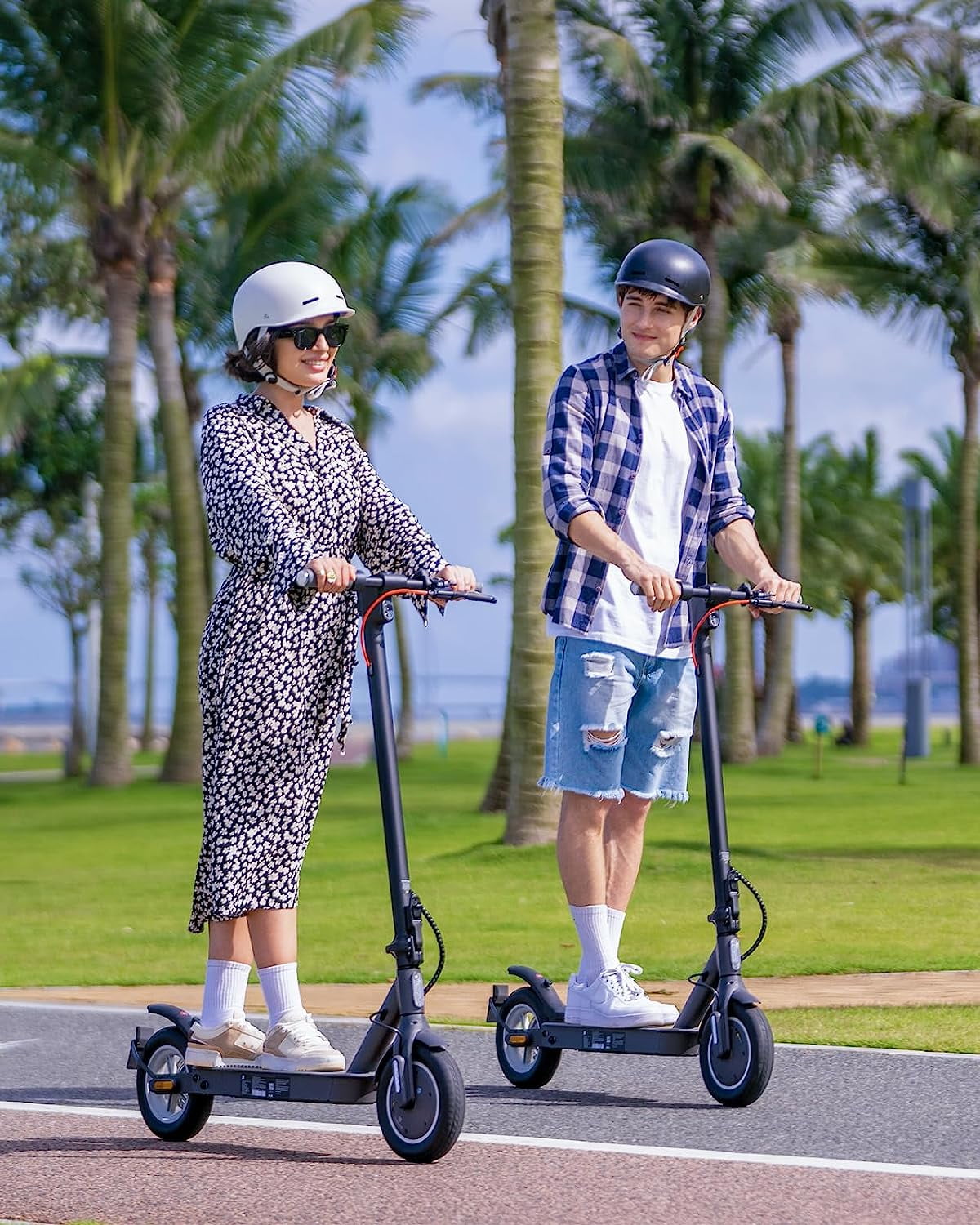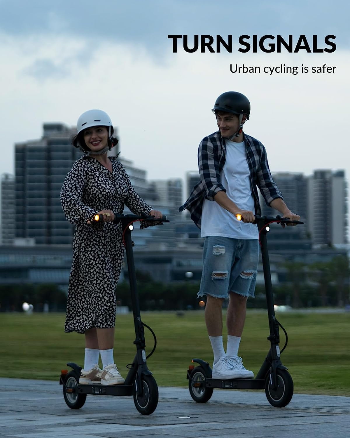 5TH WHEEL W30S 350W Motor Adult Electric Scooter with Turn Signals * This is the first scooter on the market with turn signals for traffic safety. * The 10-inch tires have the advantages of wear-resistant, durability, and longer service time. * Braking system: EABS + Disc braking. All these make it easy to ride and safer. * The net weight is 32.2lbs and this scooter can be carried easily. Features: Unique Turn Signal and Dual Brake System: 5TH WHEEL’s W30S features the safest turn signal design, providing left and right signals to accompany you intimately on your rides. It ensures pedestrians and vehicles are alerted of your upcoming turns, ensuring a safer ride. Additionally, the scooter is equipped with EABS and a mechanical disc brake system, provides responsive and timely braking at any speed. Make Commuting Easier: Our electric scooters enhance travel efficiency and reduce traffic wait times, 500W peak motor provides ample power, while the 270Wh battery ensures reaching speeds of up to 18 mph and covering distances of up to 19.9 miles range. With its 10″ solid tires and rear shock absorption, allowing you to tackle uneven terrains without any impact on your comfort. The aerospace-grade aluminum frame offers sturdy support for riders weighing up to 264 pounds and effortlessly conquers 15% inclines. Cruise Control and 4-Speed: The cruise control feature allows for a more relaxed and energy-efficient ride, as you no longer need to continuously hold down the throttle for a comfortable and stable riding experience. The scooter also offers four-speed gears, giving you the freedom to choose your preferred speed to adapt to different riding scenarios. The Smart 5thWheel App supports functions such as locking the scooter, changing speed units, and checking battery life. Foldable and Lightweight: Adult electric scooter can be folded in just 3 seconds, achieving maximum portability. After folding, its dimensions are 44.5*19.1*18.1 inches, and it weighs 32.2 pounds, making it easy to carry and store in your garage or car, ensuring enhanced theft-proof security. 5TH WHEEL Support Service: Providing 12-month manufacturer’s warranty and replaceable parts. Feel free to reach out to us anytime, and we will respond within 24 hours to ensure a satisfactory solution.